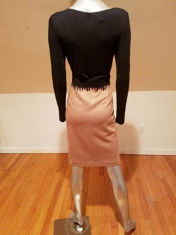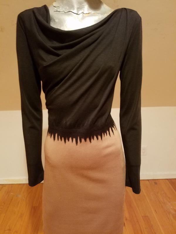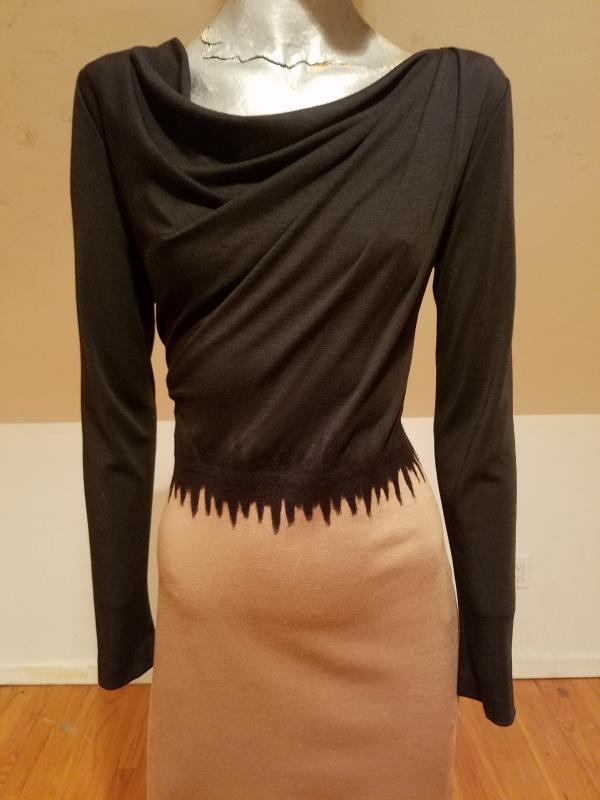 A stunning Escada Couture draped wool blend dress with long sleeves and gorgeous details