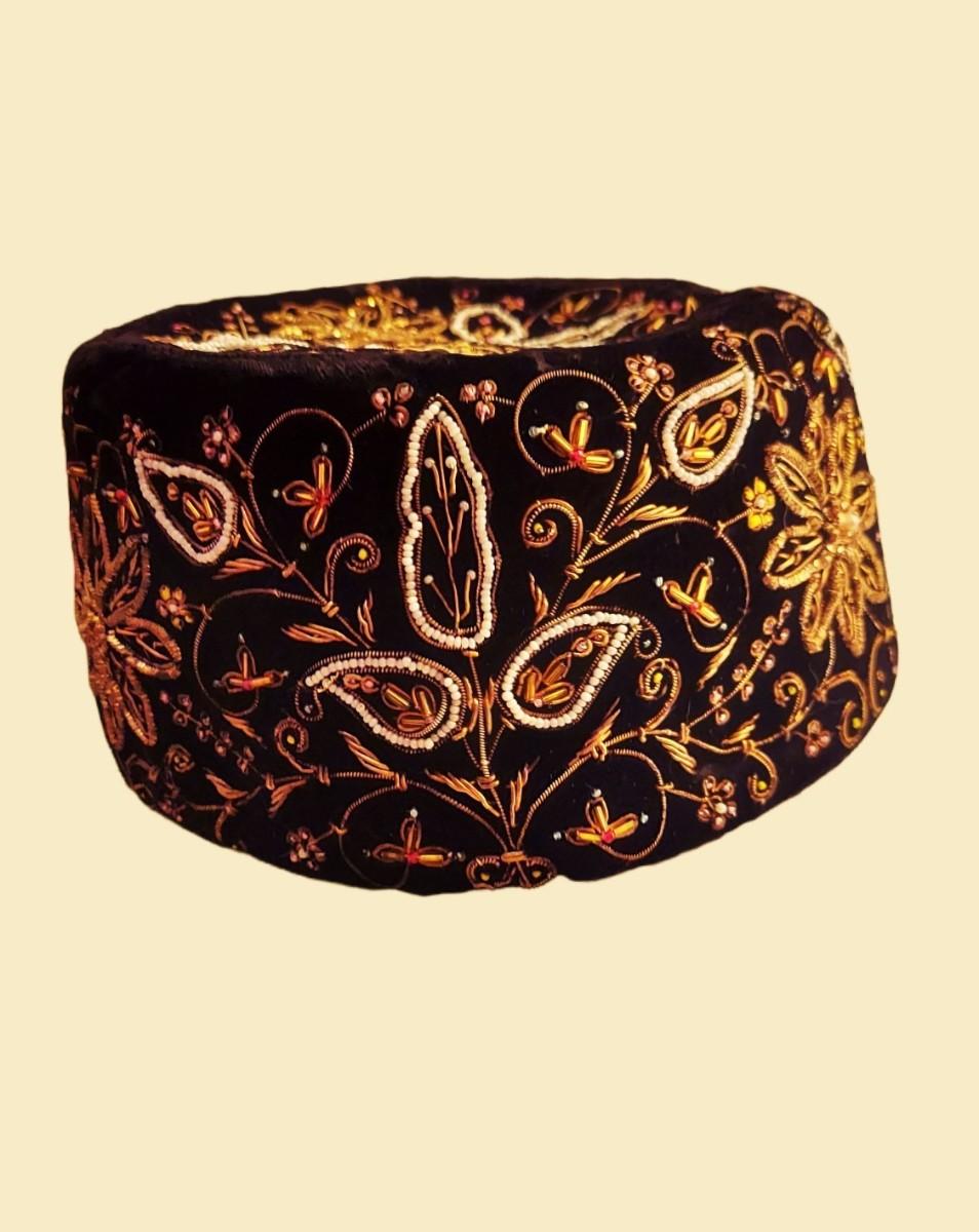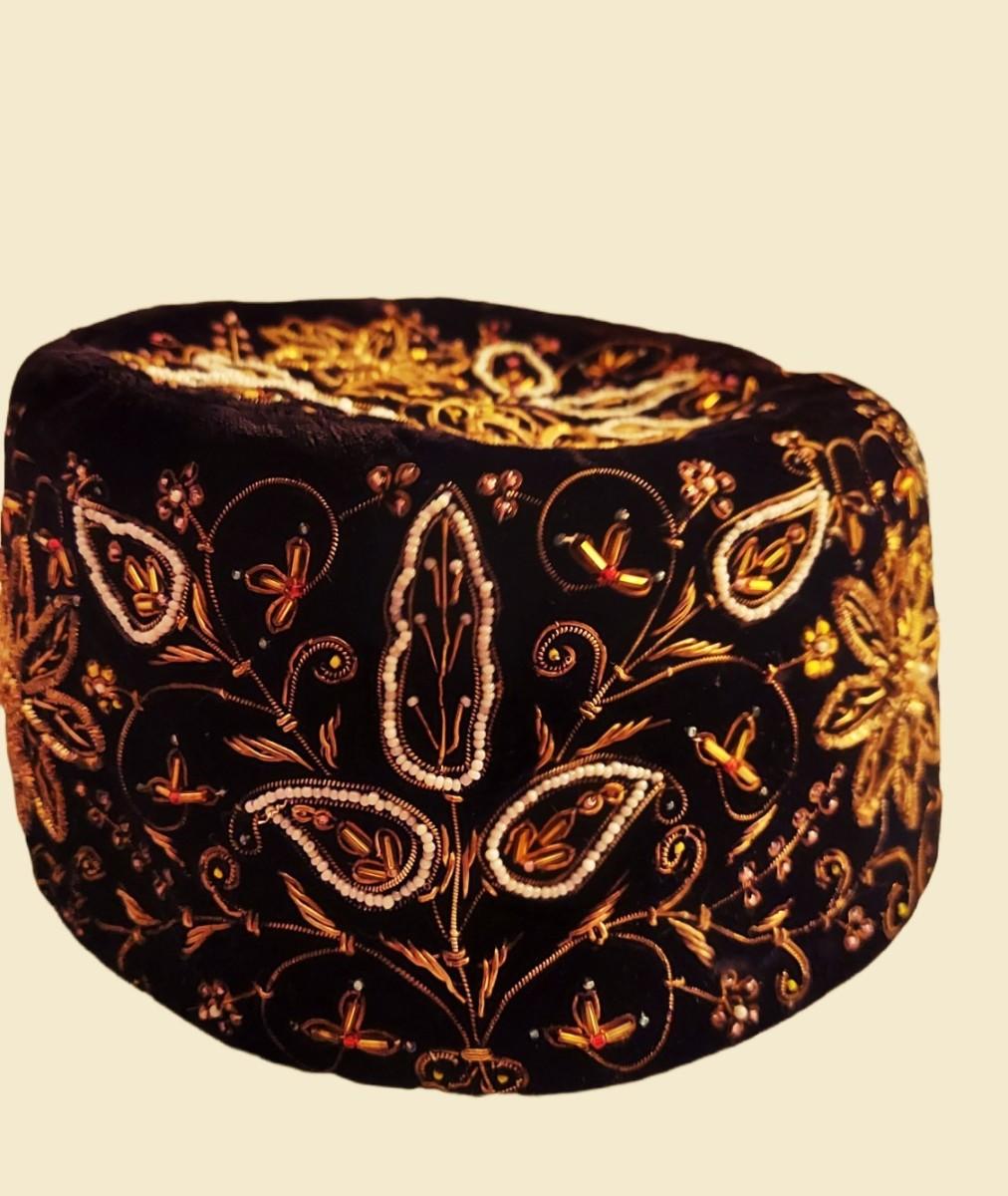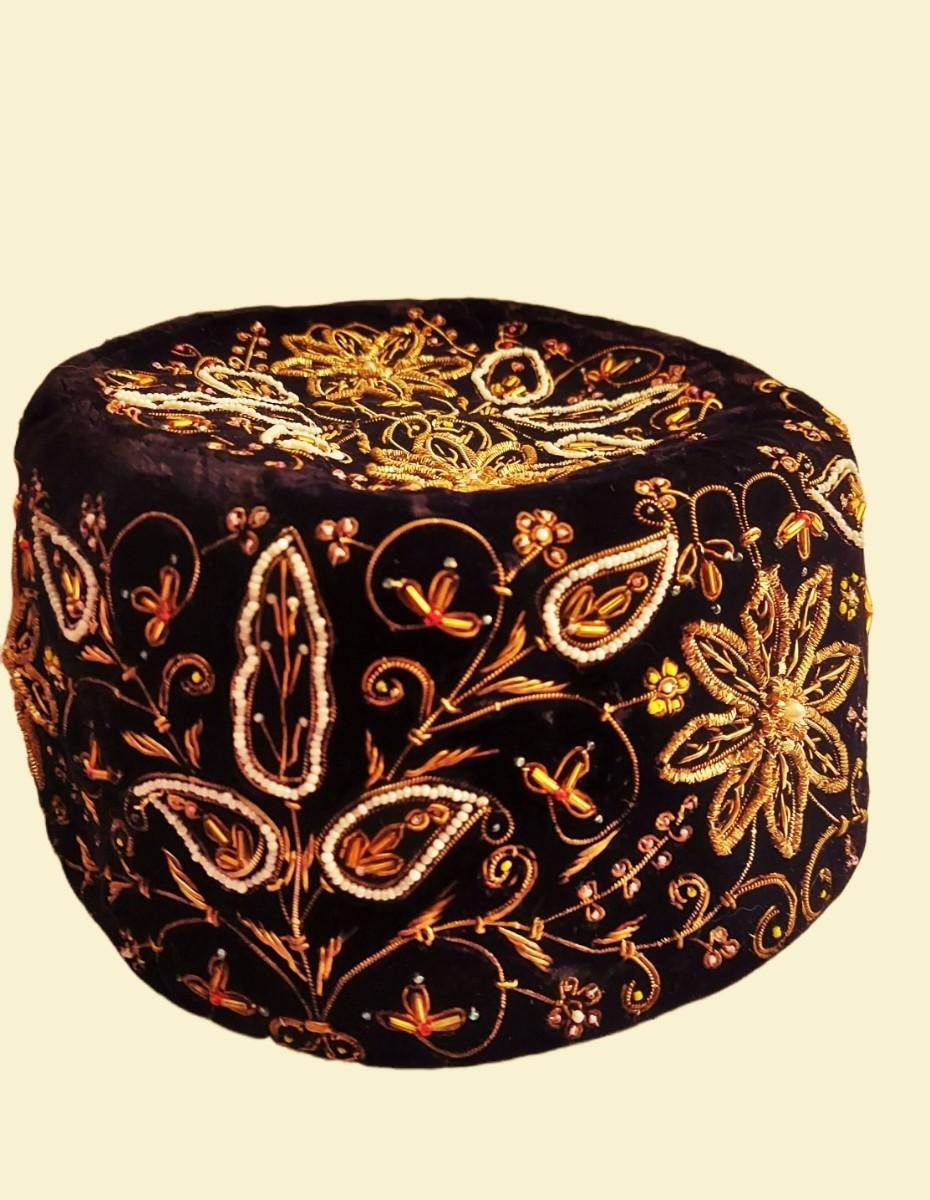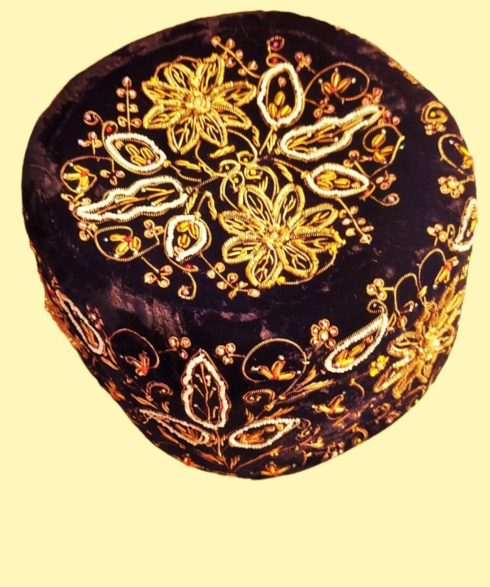 Magnifficent Old Tarboush hat all Hndmade with Embellished Zardozi Gold Embroidery and Beads