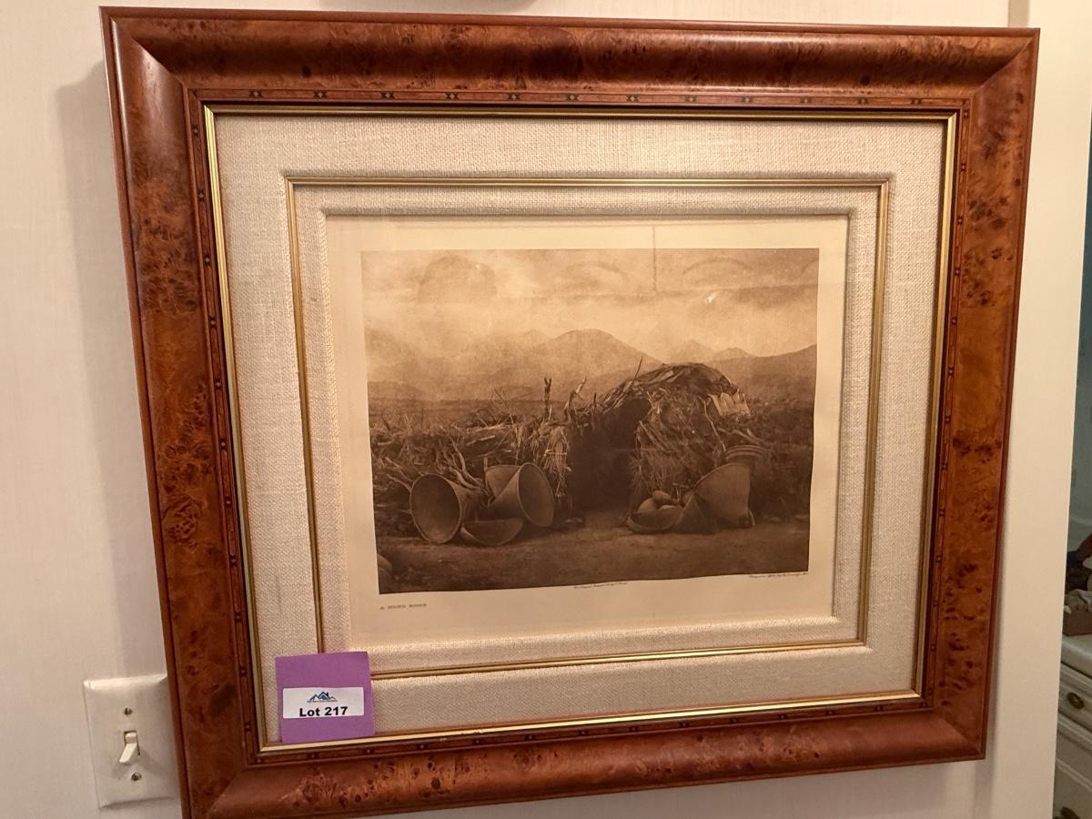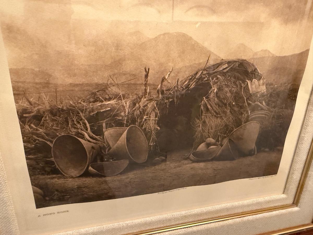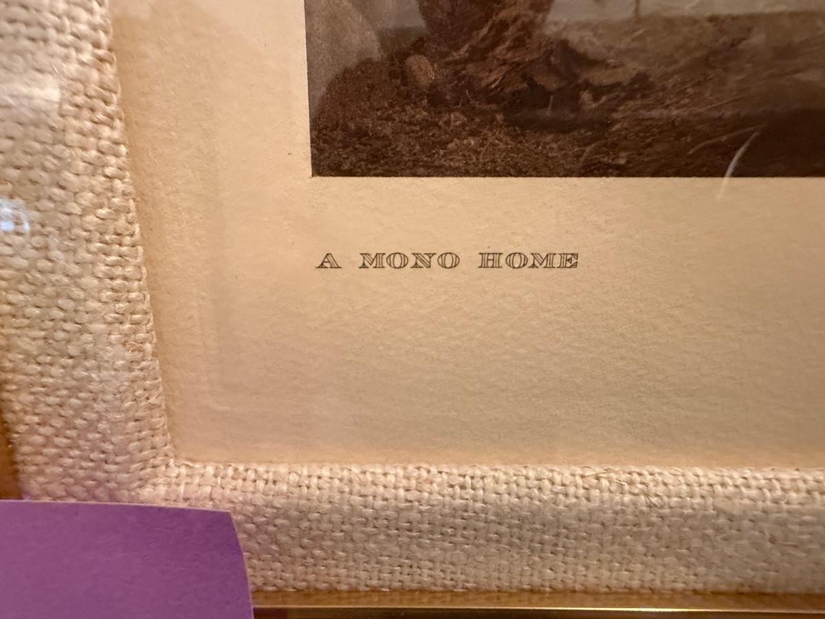 wood framed Vtg. EL Curtis art titled “A Mono Home”