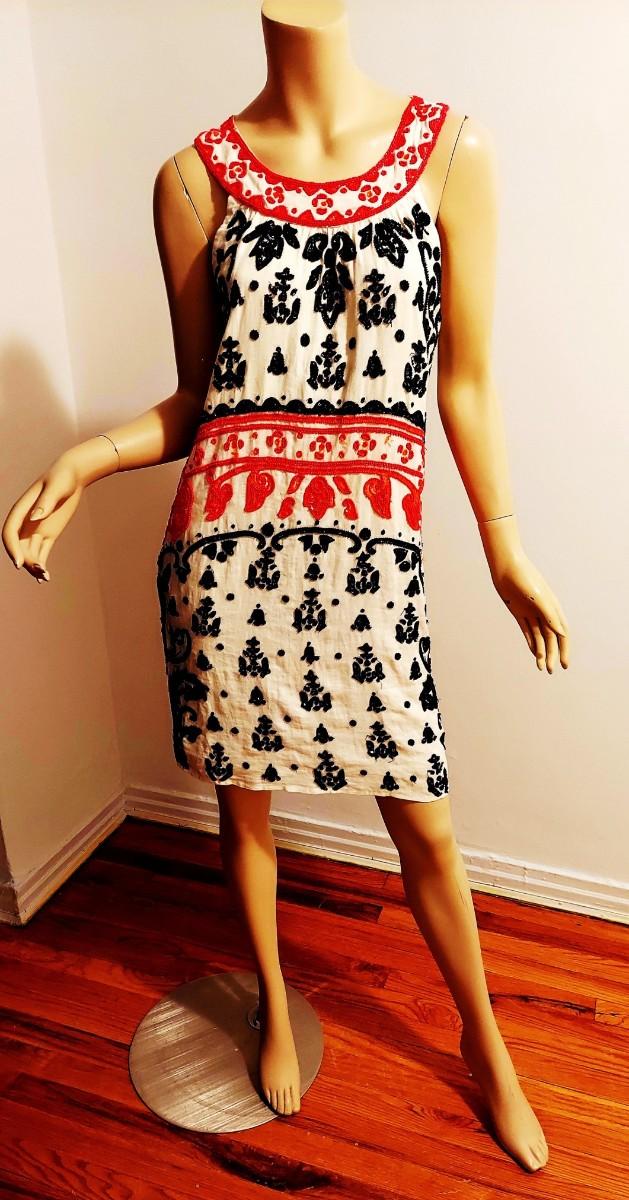 Vtg Fully Hand Beaded  Sheath Dress Floral Design 1950's