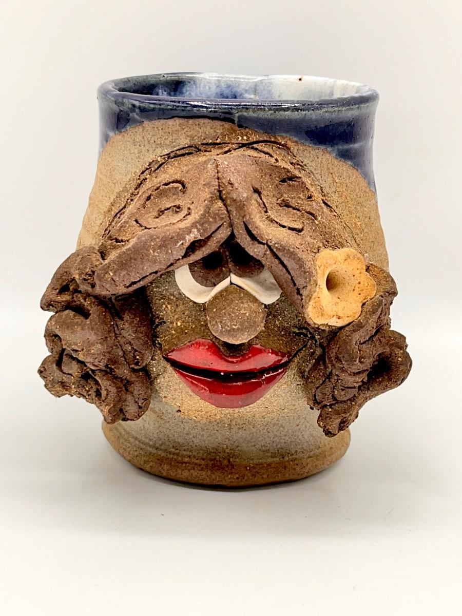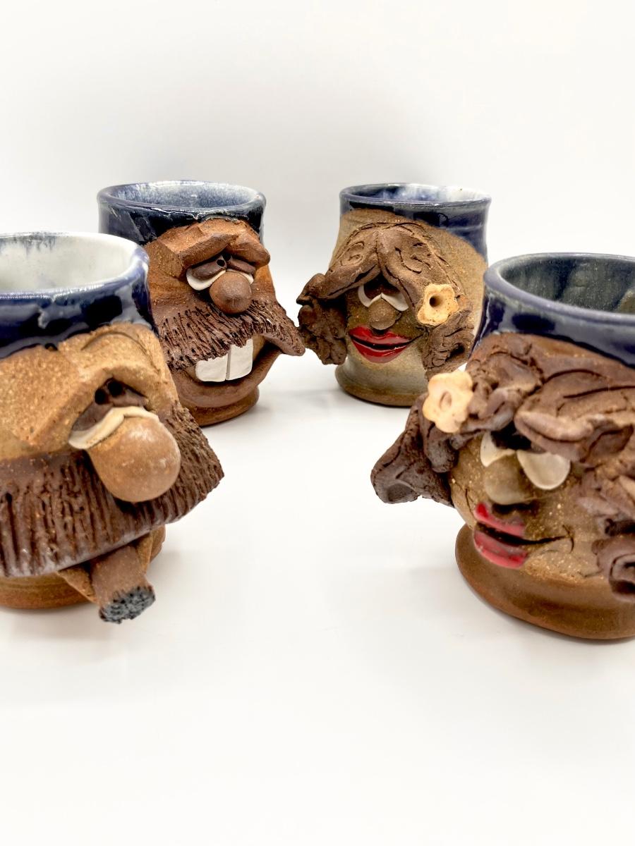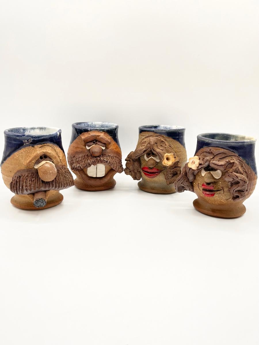 Vtg. Funny Face Coffee Mugs Made Of Pottery ~ Set Of Four (4)