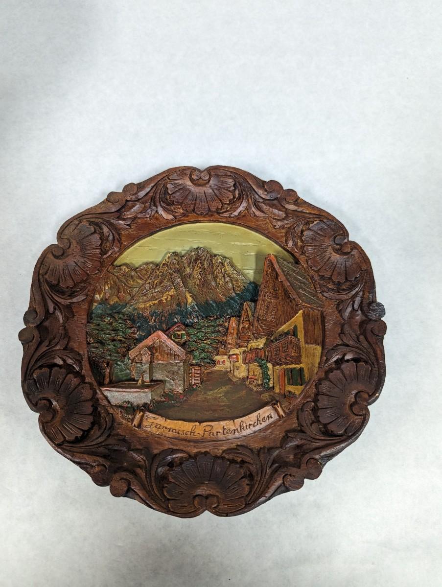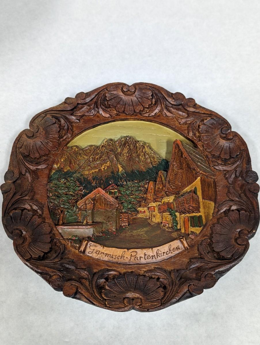 Vtg Garmisch-Partenkirchen Germany 3-D Souvenir Plate Handpainted Pressed Wood