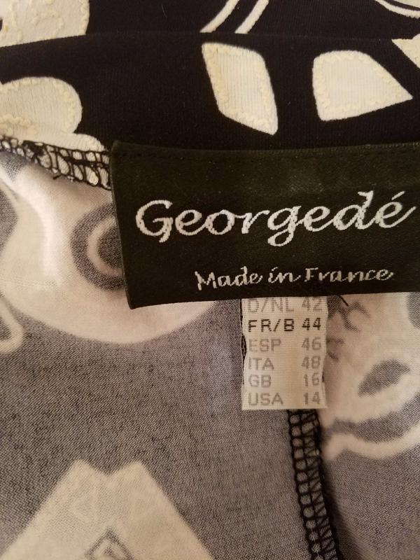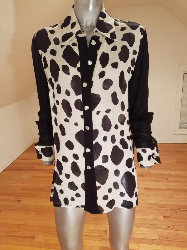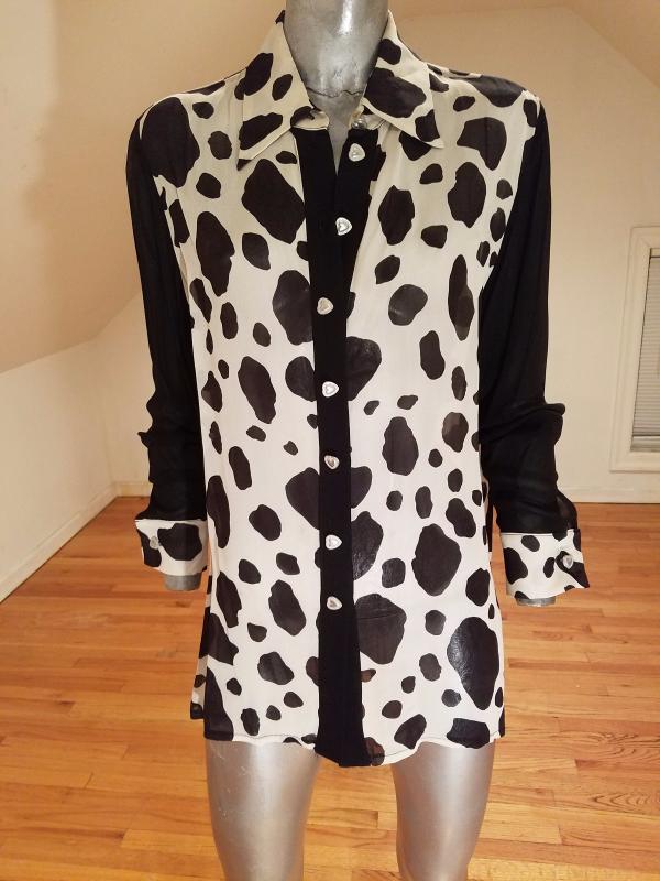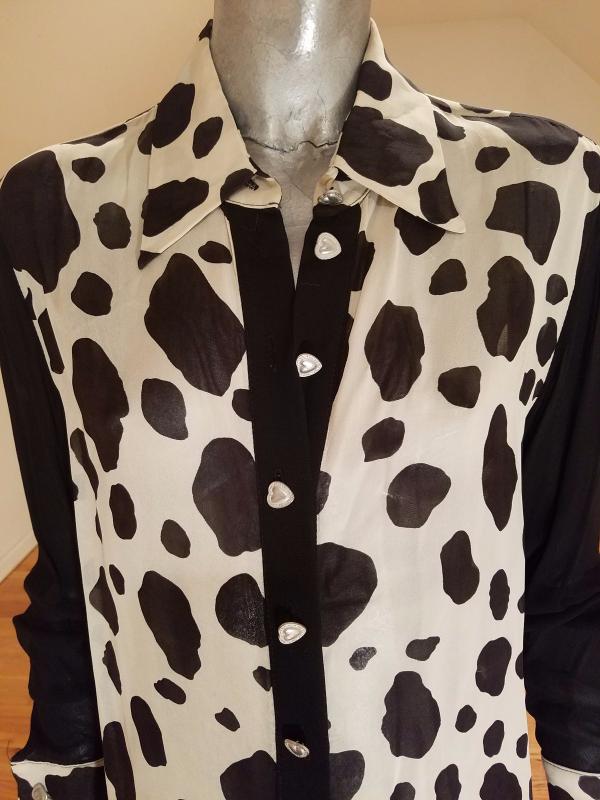 This is a gorgeous black and white animal print tunic blouse made in France by Georgete'