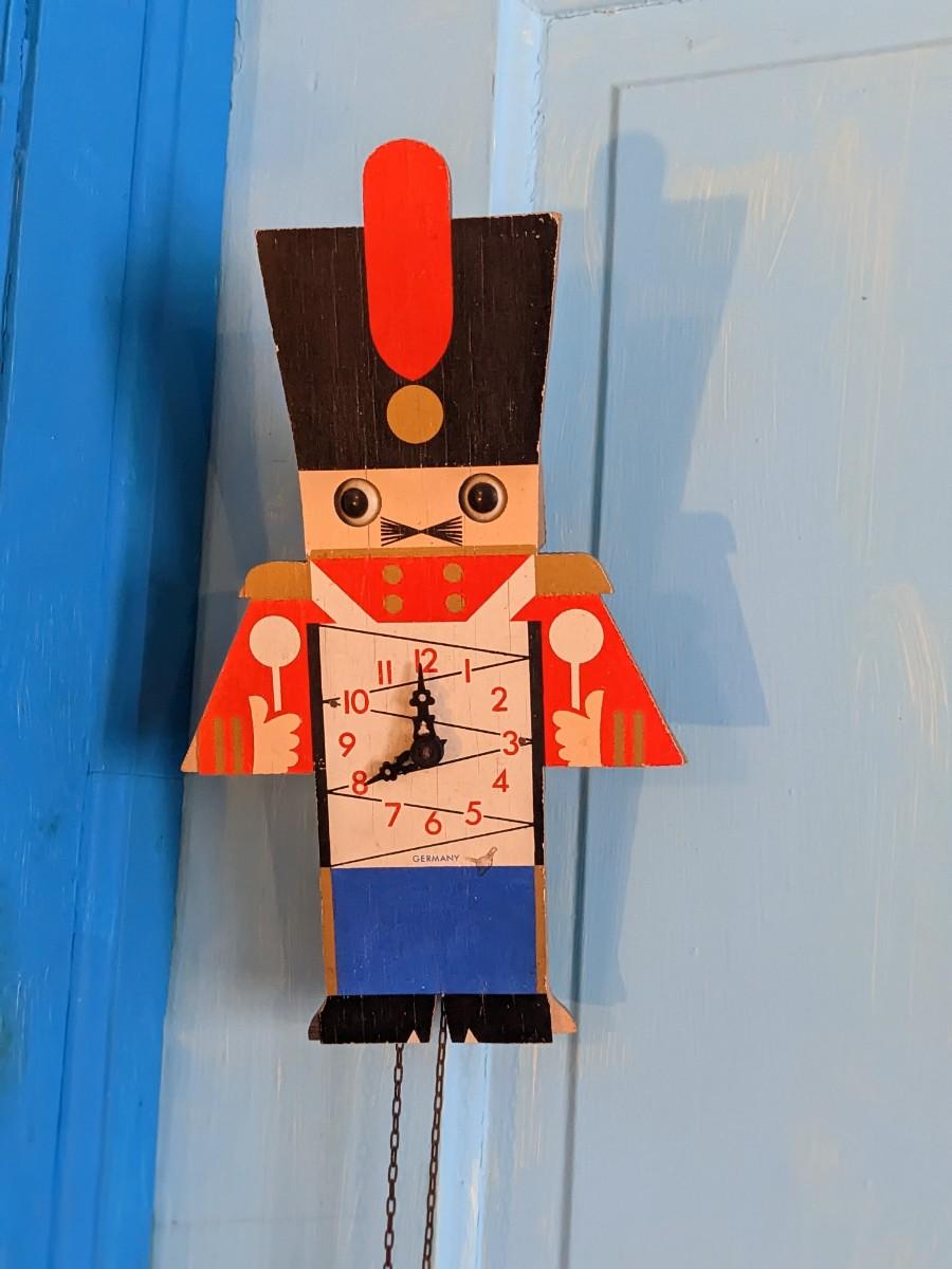 Vtg German Toy Soldier Rolling Eyes Novelty Wall Clock, no weights