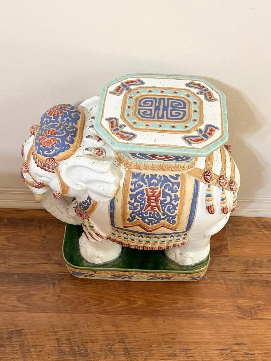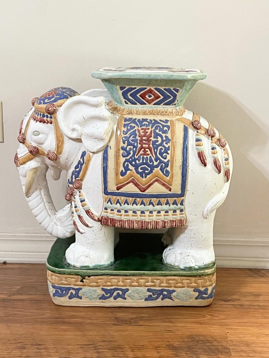 Vtg. Glazed Ceramic Elephant Plant Stand/Table