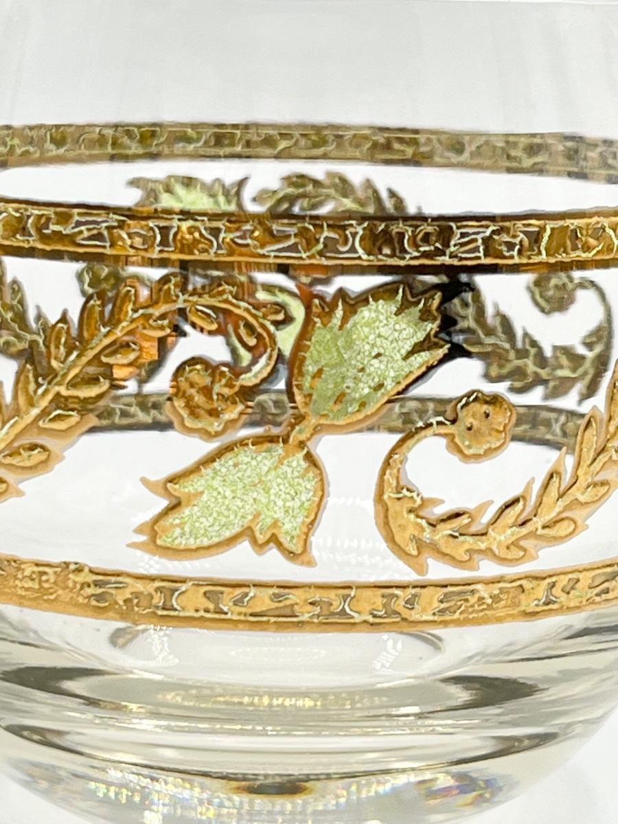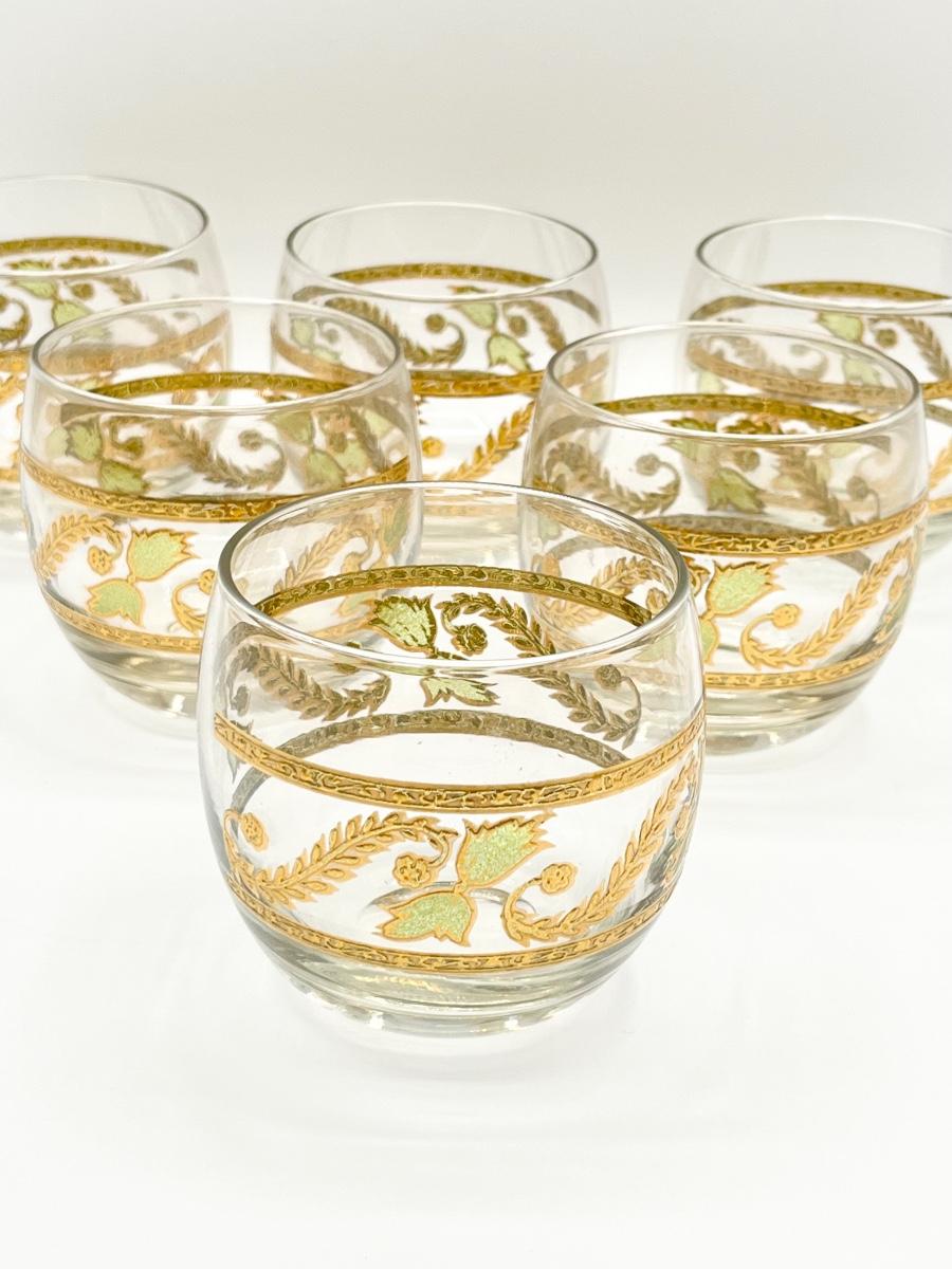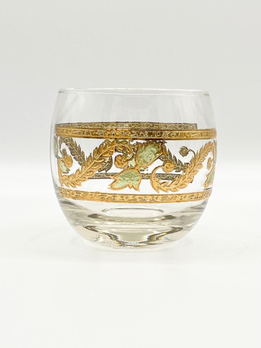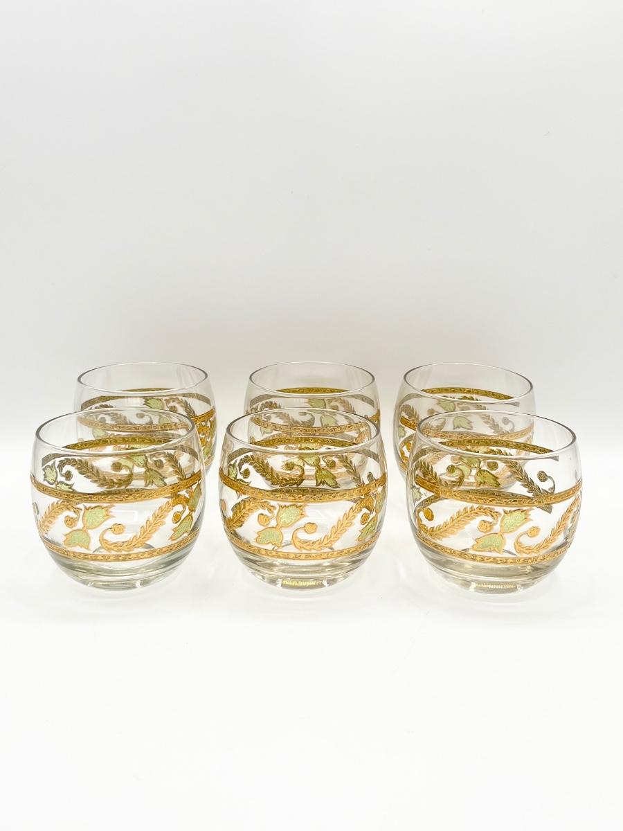 Vtg. Gold & Green Roly Poly Drinking Glasses ~ Set Of Six (6)