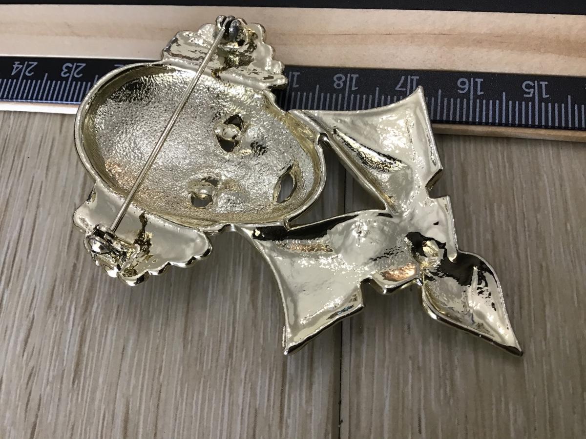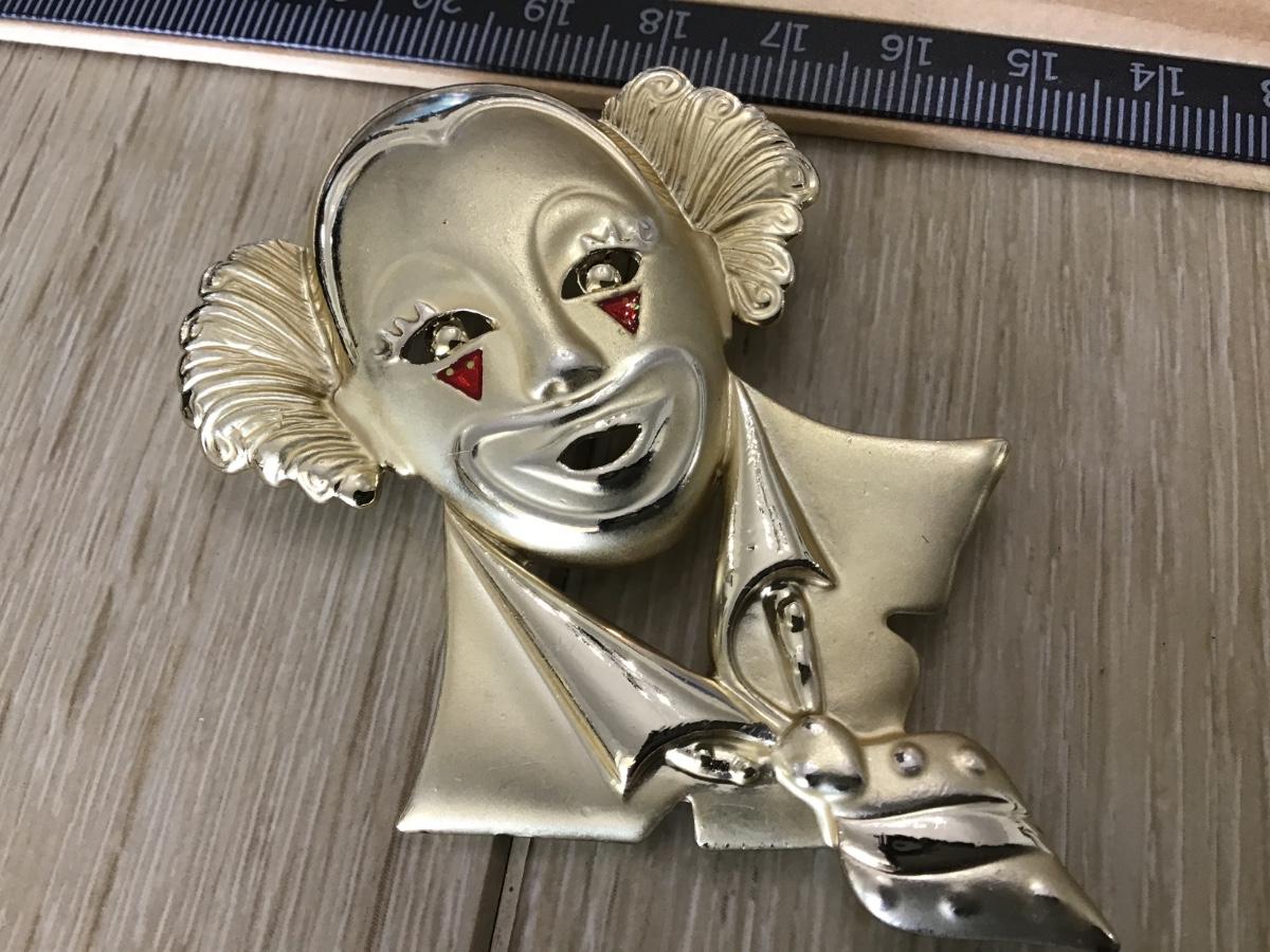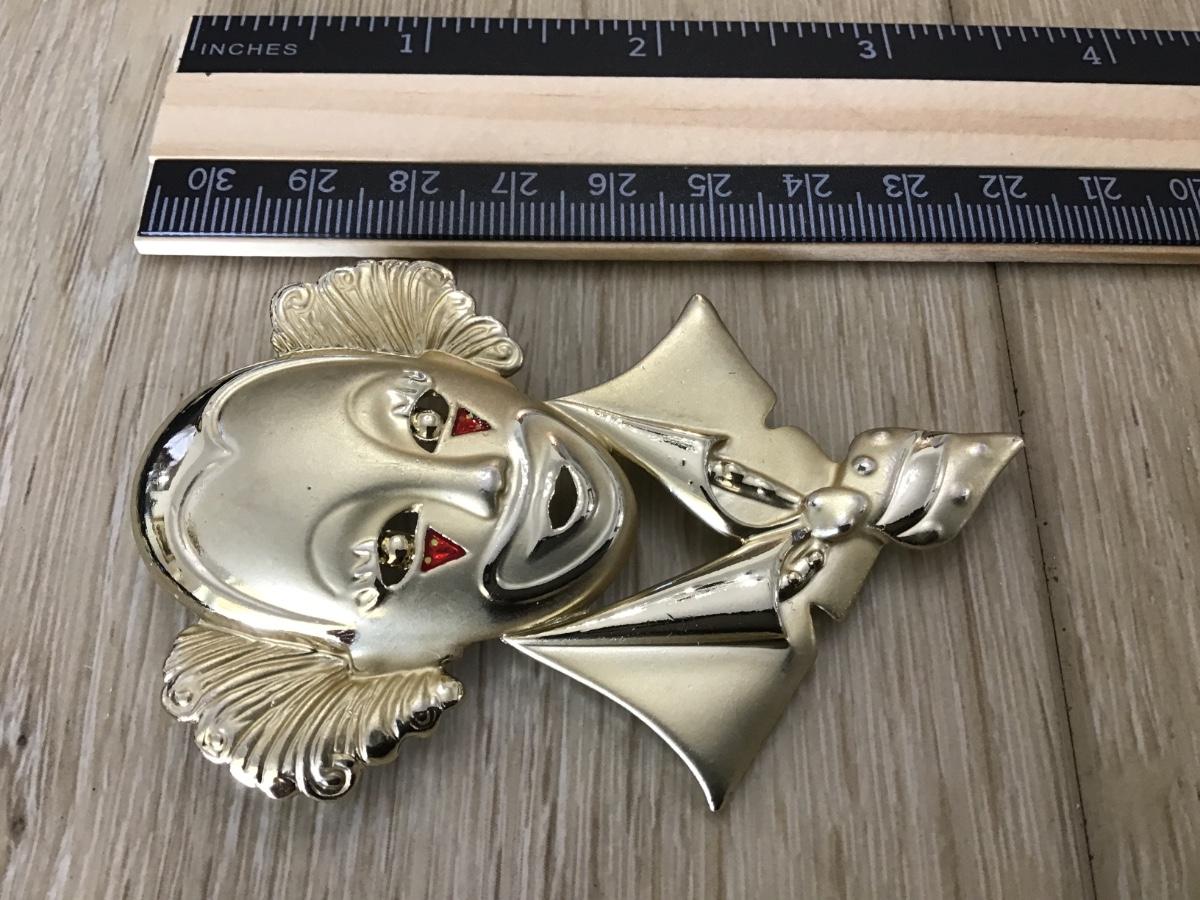 VTG Gold Tone Clown Brooch Pin Circus Red Triangle Eyes Belive AJC