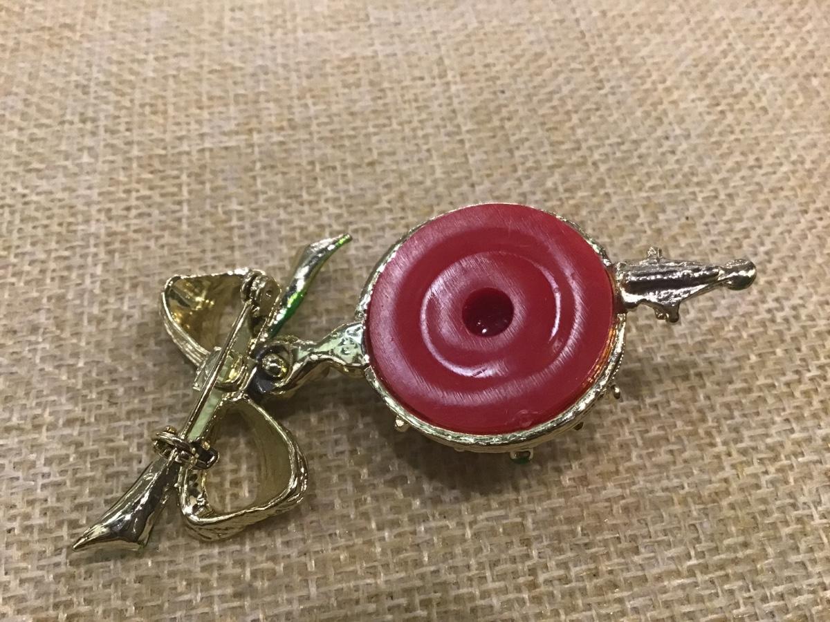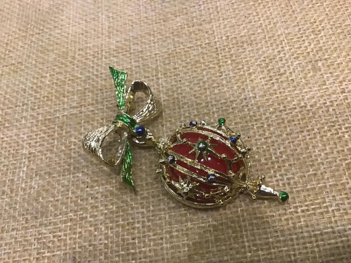 VtG Gold Tone Enamel Hanging Christmas Ball Ornament Brooch Pin Gerrys