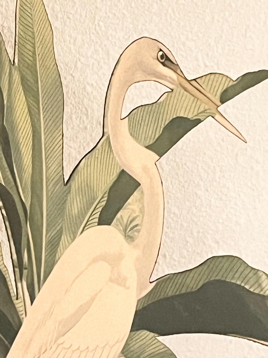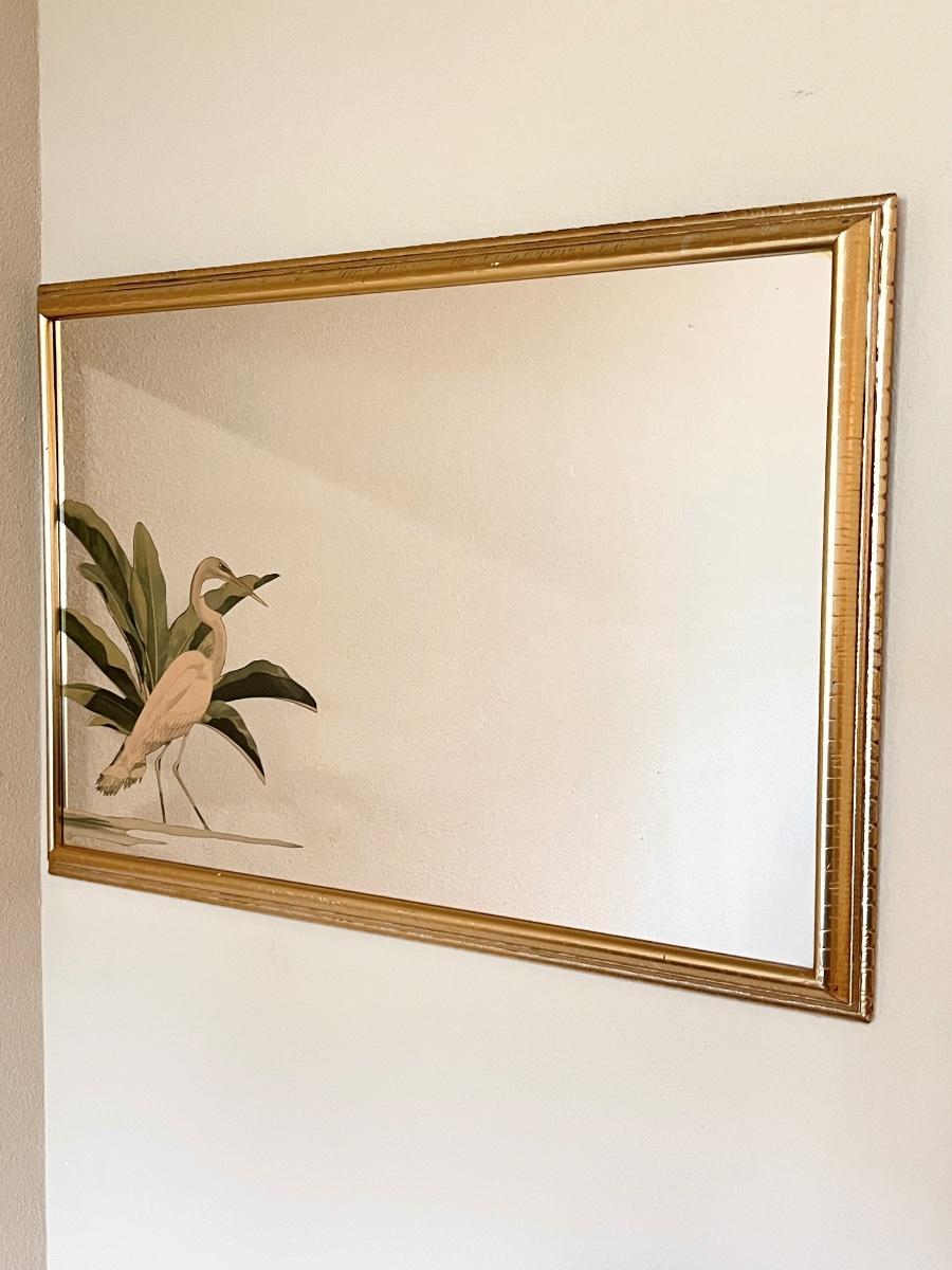 Vtg. Gold Wood Framed Mirror With Egret Painting