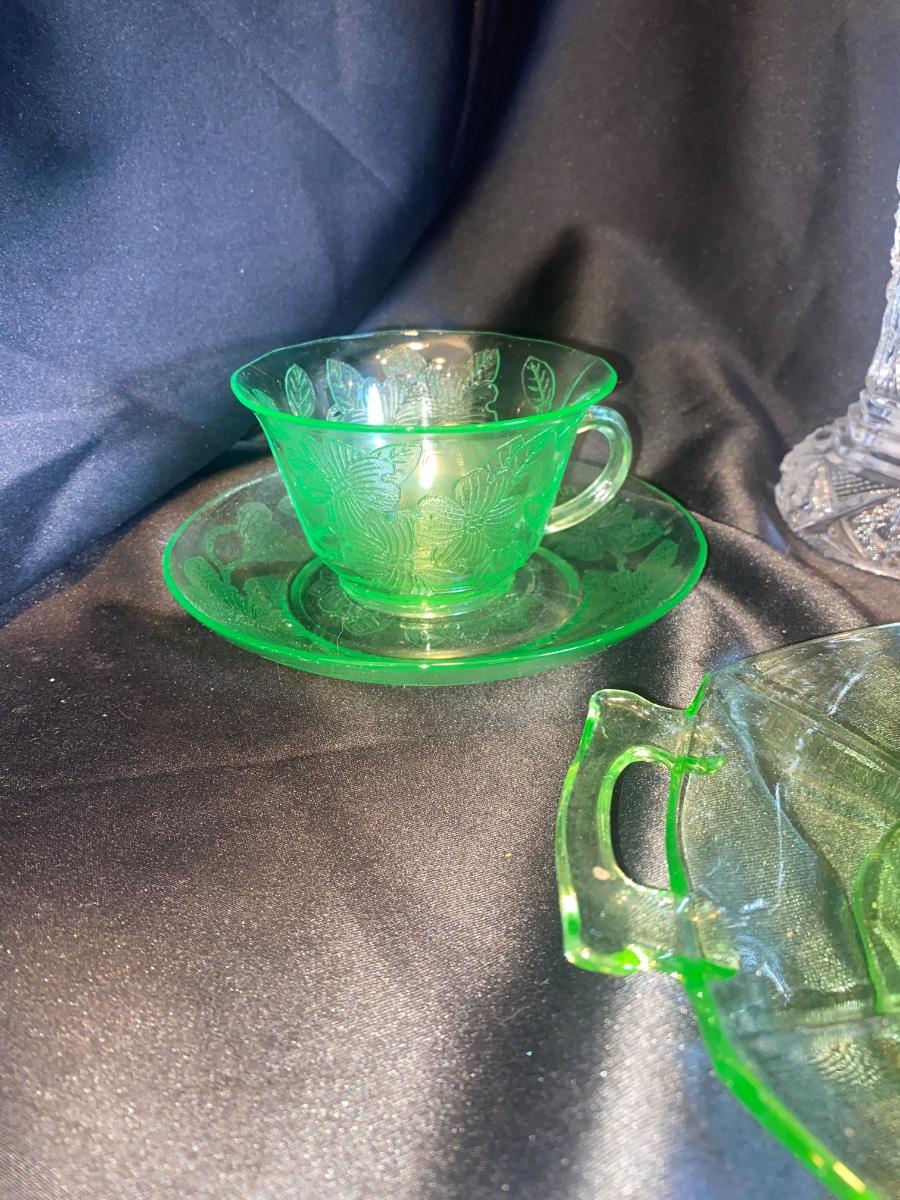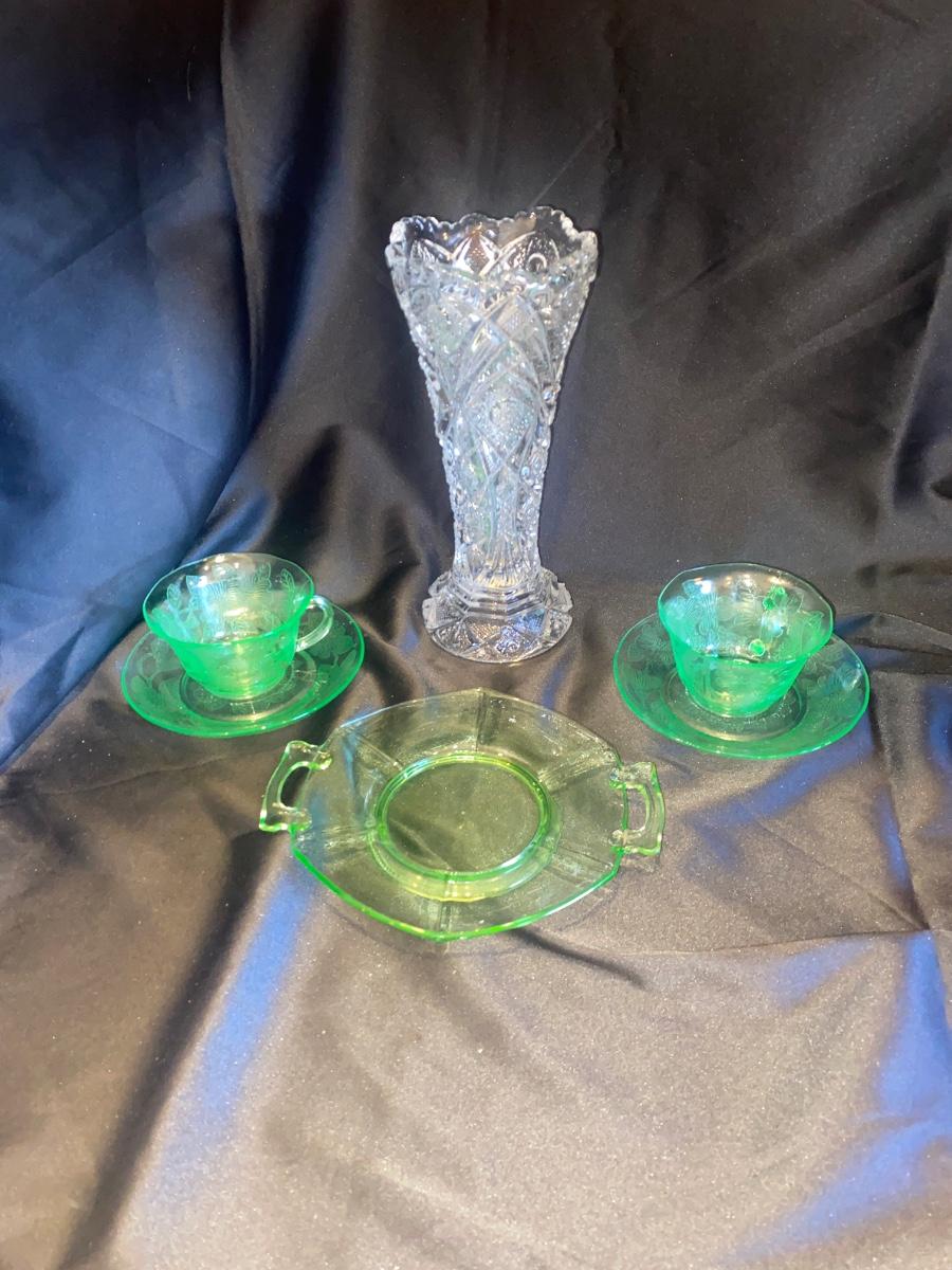 VTG GREEN URANIUM DEPRESSION GLASS AND LEAD CRYSTAL