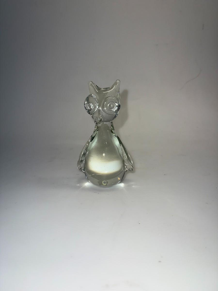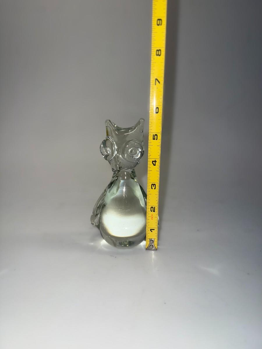 VTG HAND BLOWN CRYSTAL GLASS OWL FIGURINE BUBBLE EYES & ROUND WINGS