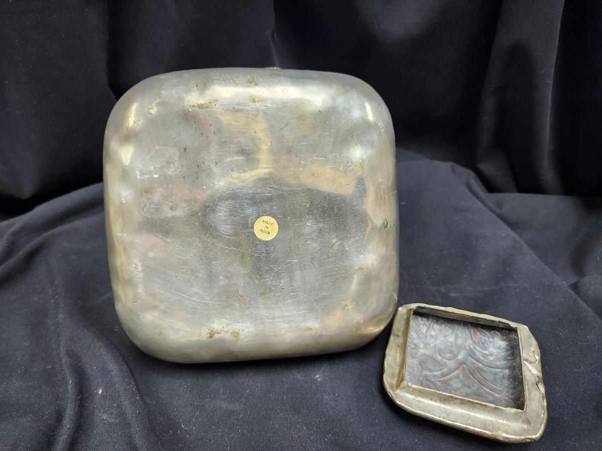 Silvertone container with lid. Made in India