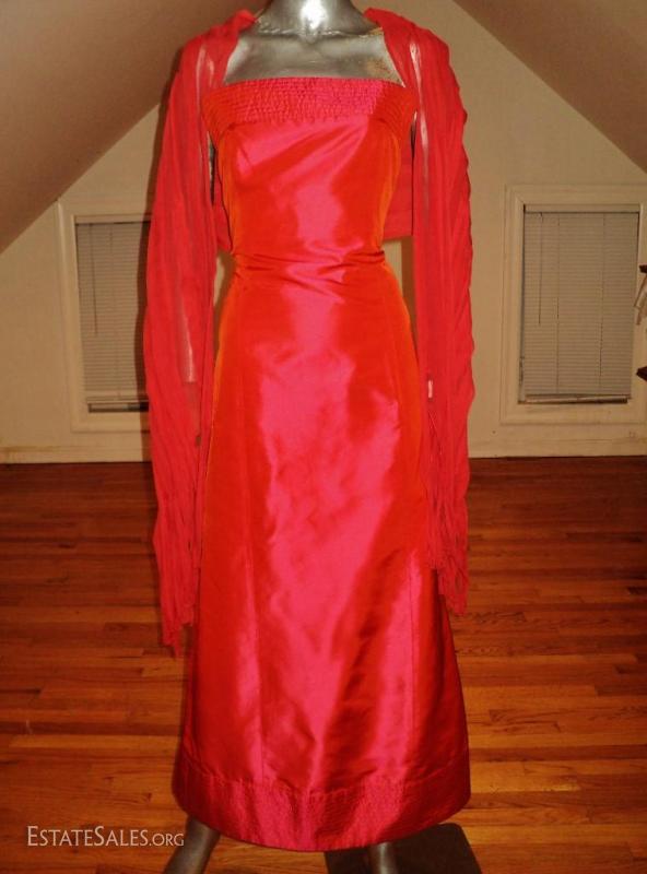 Rare Couture silk shantung Runway gown with amazing details stitched embroidery.