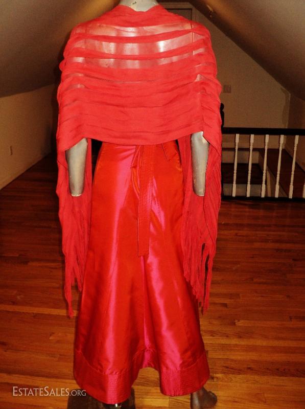 Has a large long pleated fringed shawl.. What a rare beauty and a collector's dream
