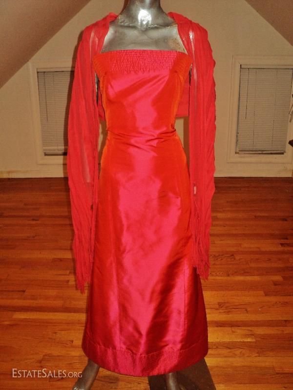 Rare Couture silk shantung Runway gown with amazing details stitched embroidery.