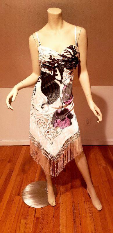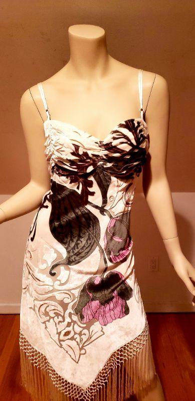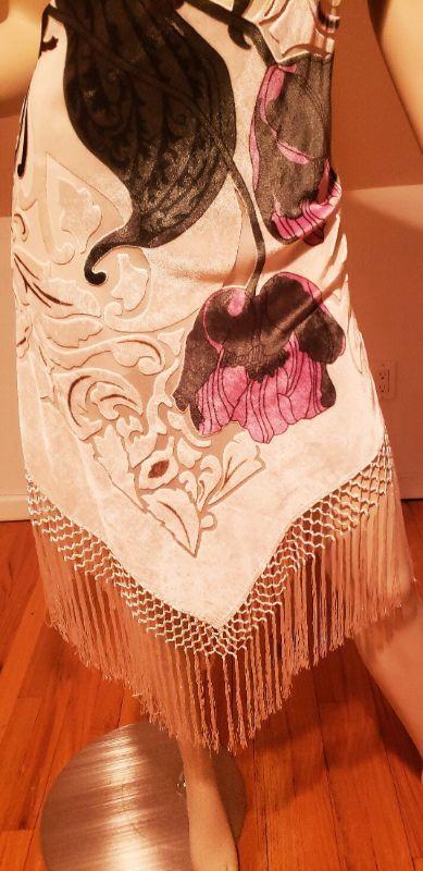 Vtg Hobo Chic New Orleans silk Designer burnout fringed high low dress