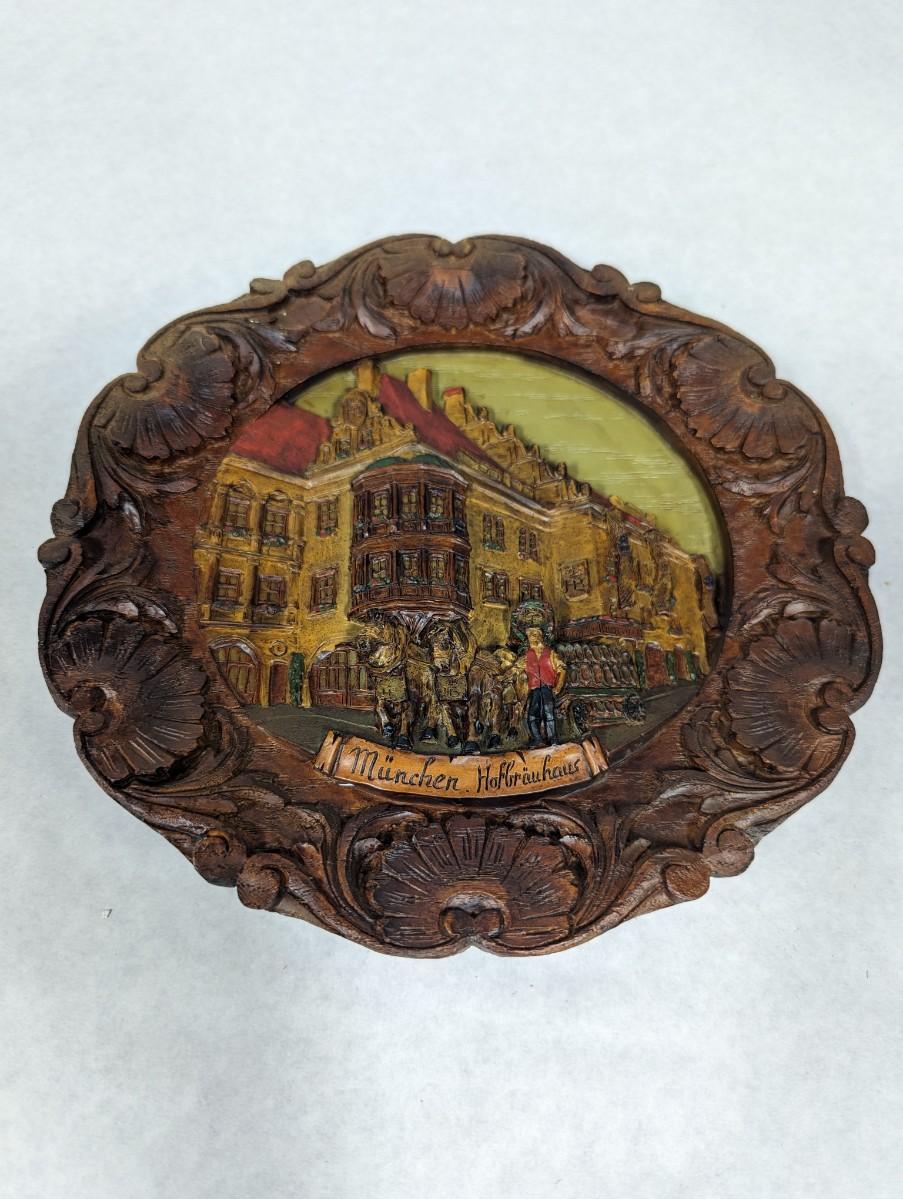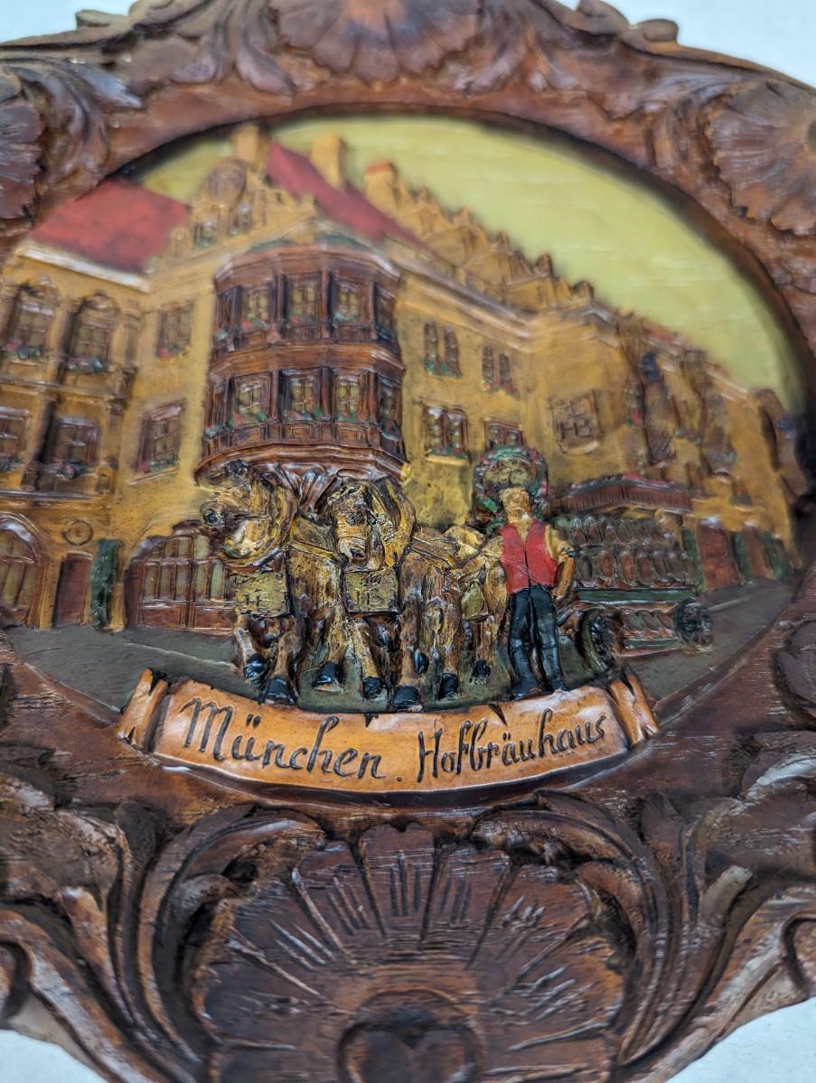 Vtg Hofbräuhaus München Germany 3-D Souvenir Plate Handpainted Pressed Wood