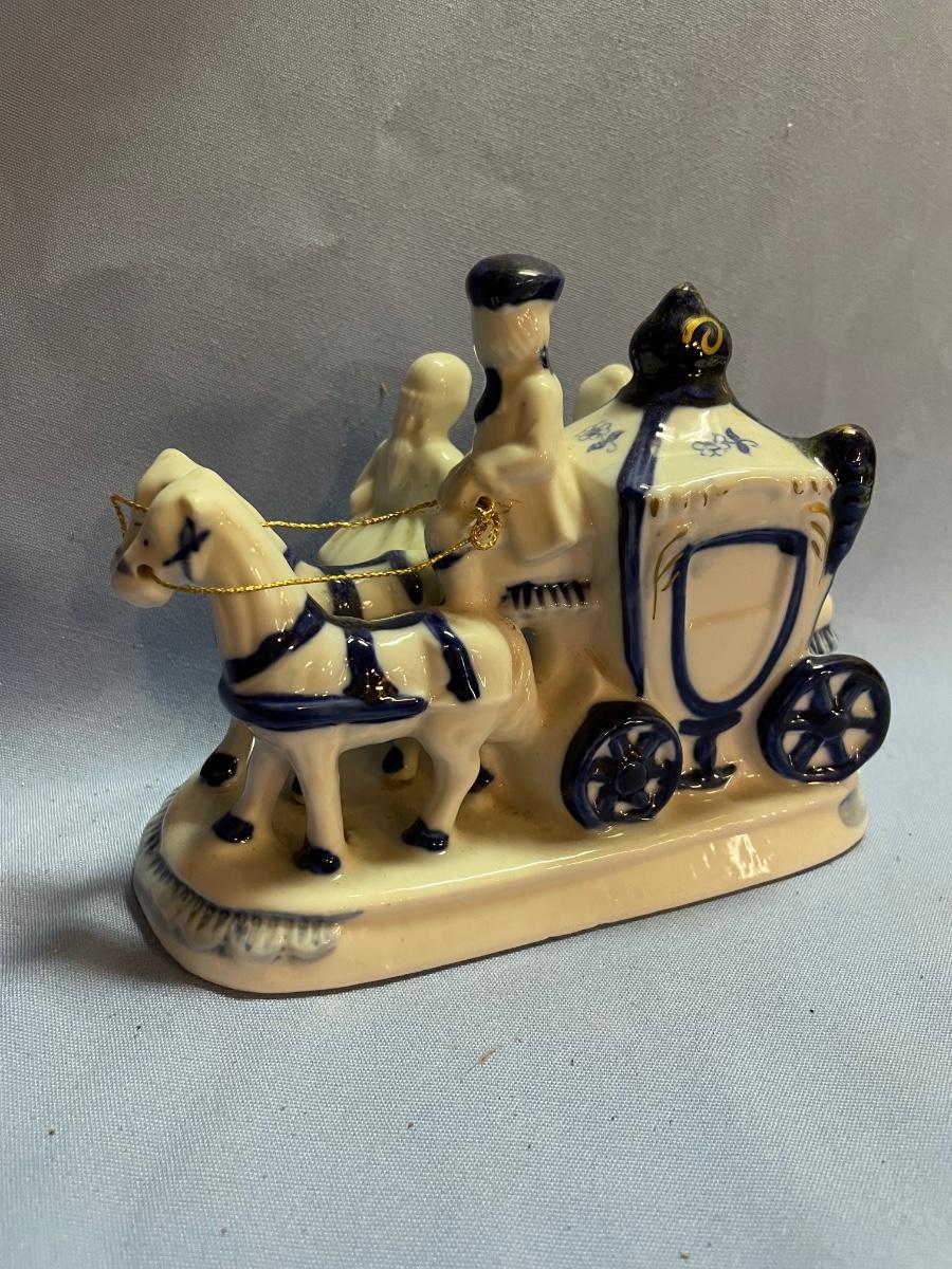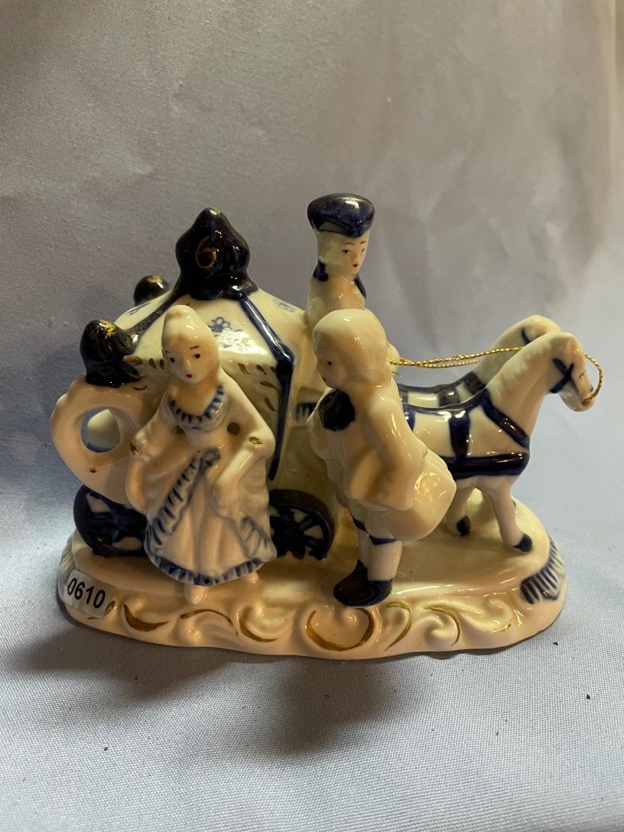 Vtg horse carriage Victorian couple-cobalt blue/white porcelain