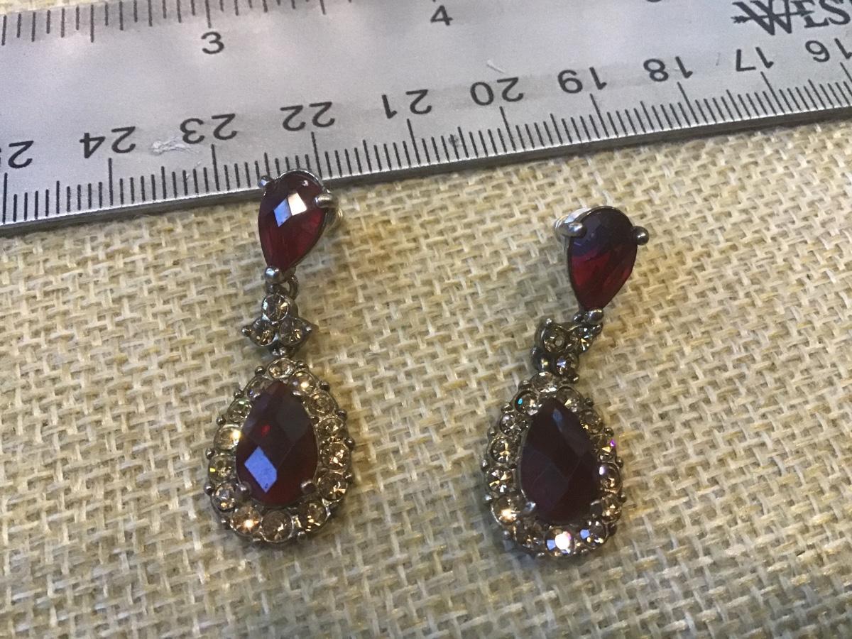 Vtg Iconic Monet Gold Tone Rhinestone Faux Ruby Drop Dangle Pierced Earrings