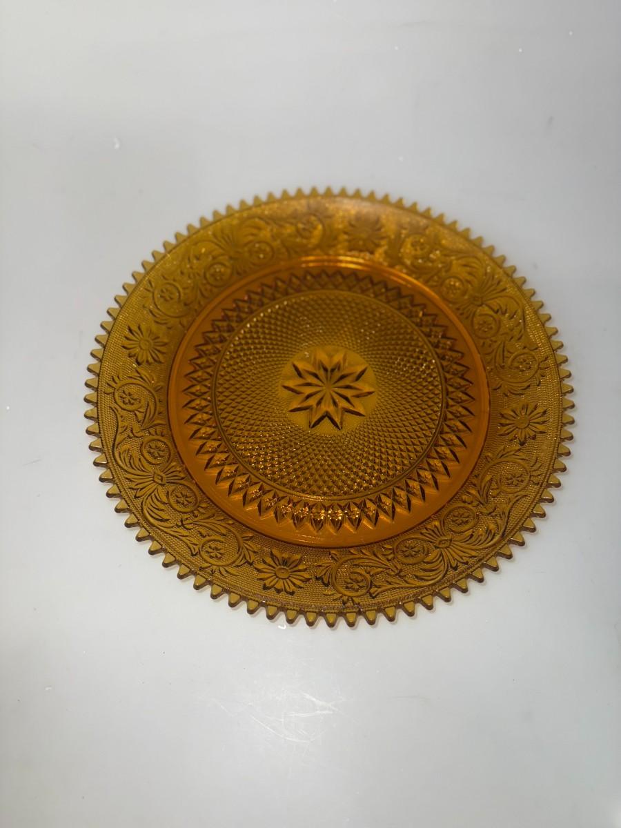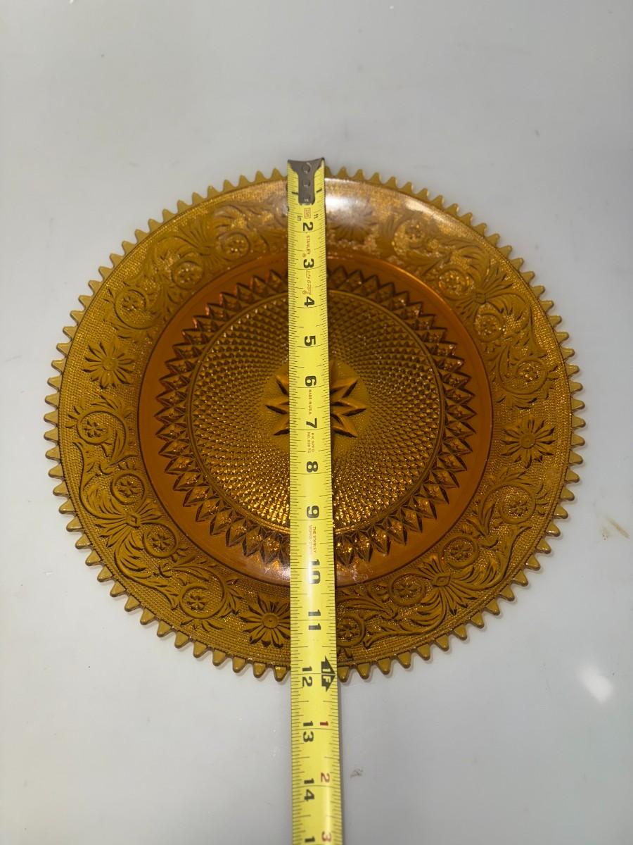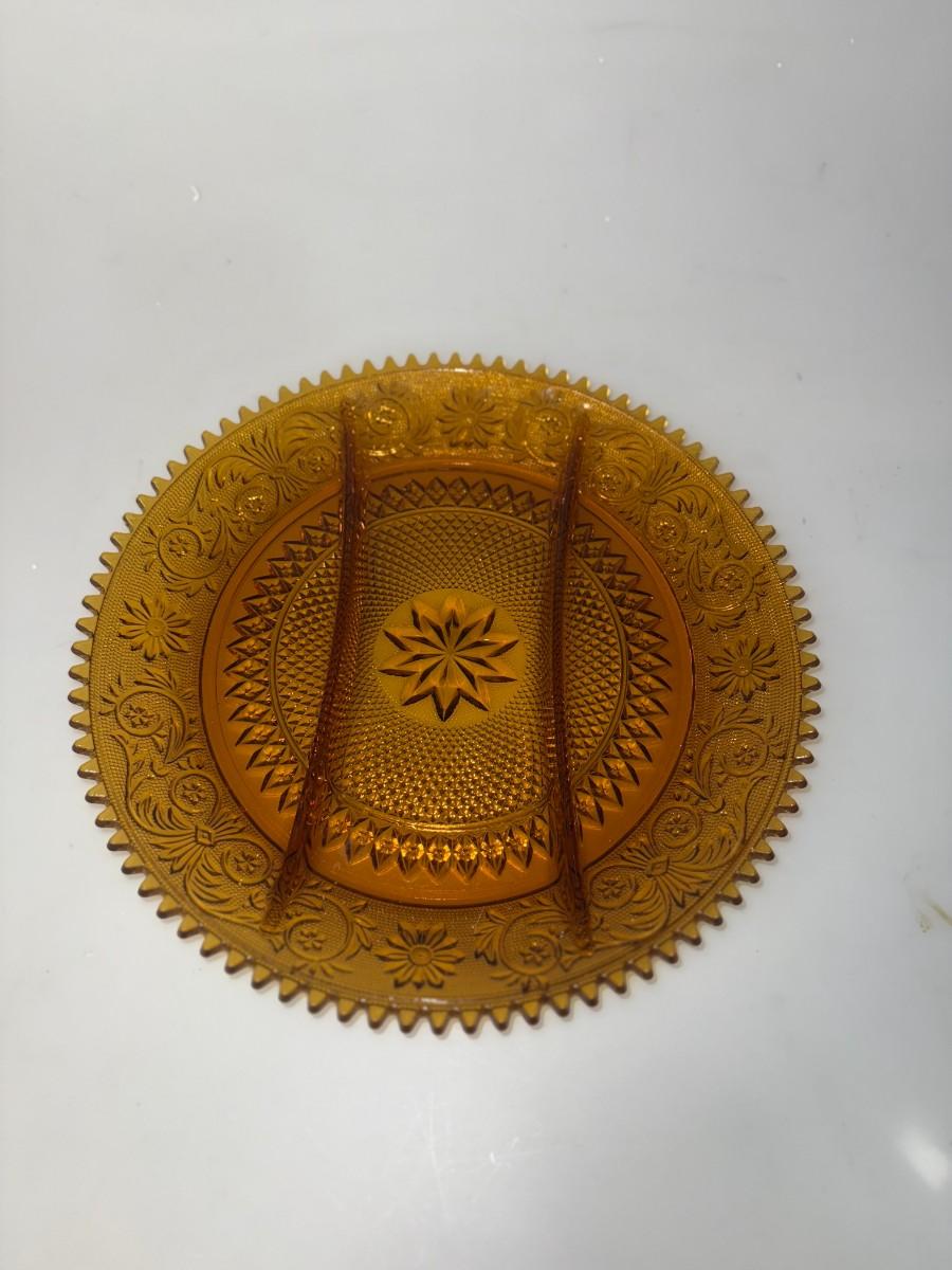 Vtg Indiana Tiara Amber Glass Sandwich Starburst Divided Serving Dish Plate 12”