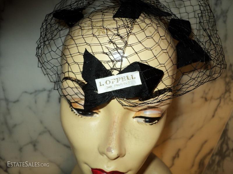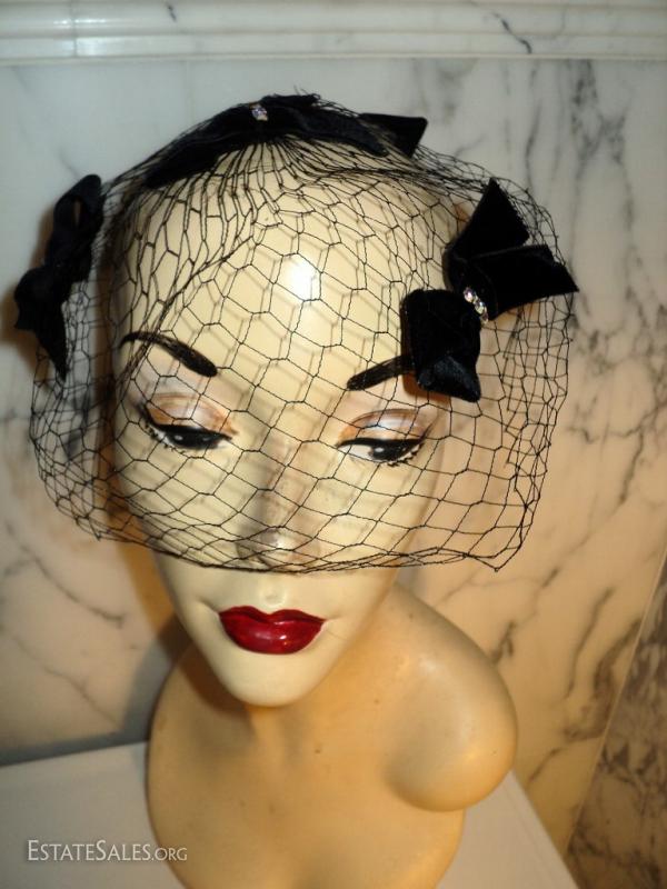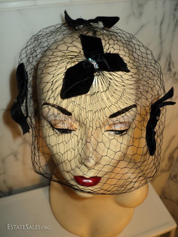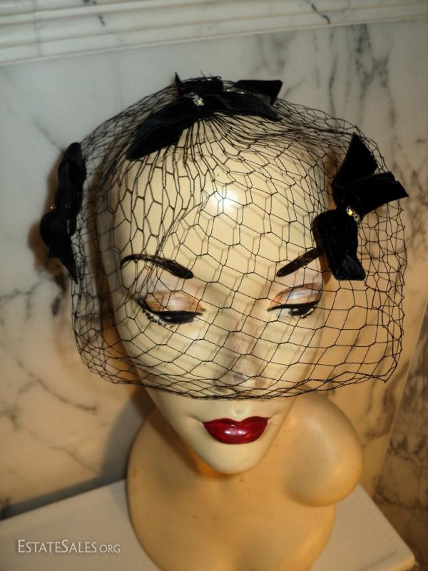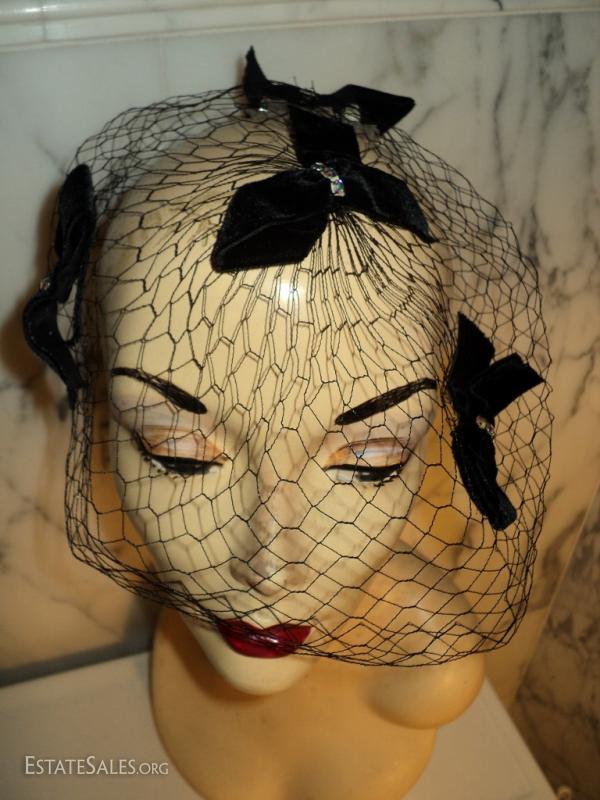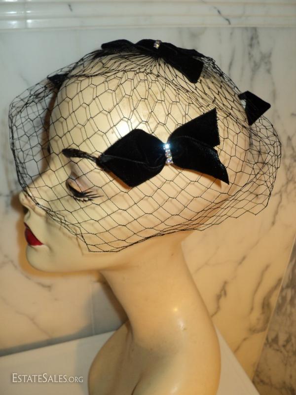 A net chapeau stunner by I. Offell fascinator San Francisco Bows with rhinestone all over the net