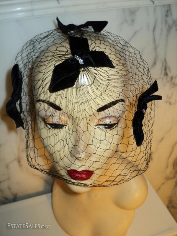 A net chapeau stunner by I. Offell fascinator San Francisco Bows with rhinestone all over the net