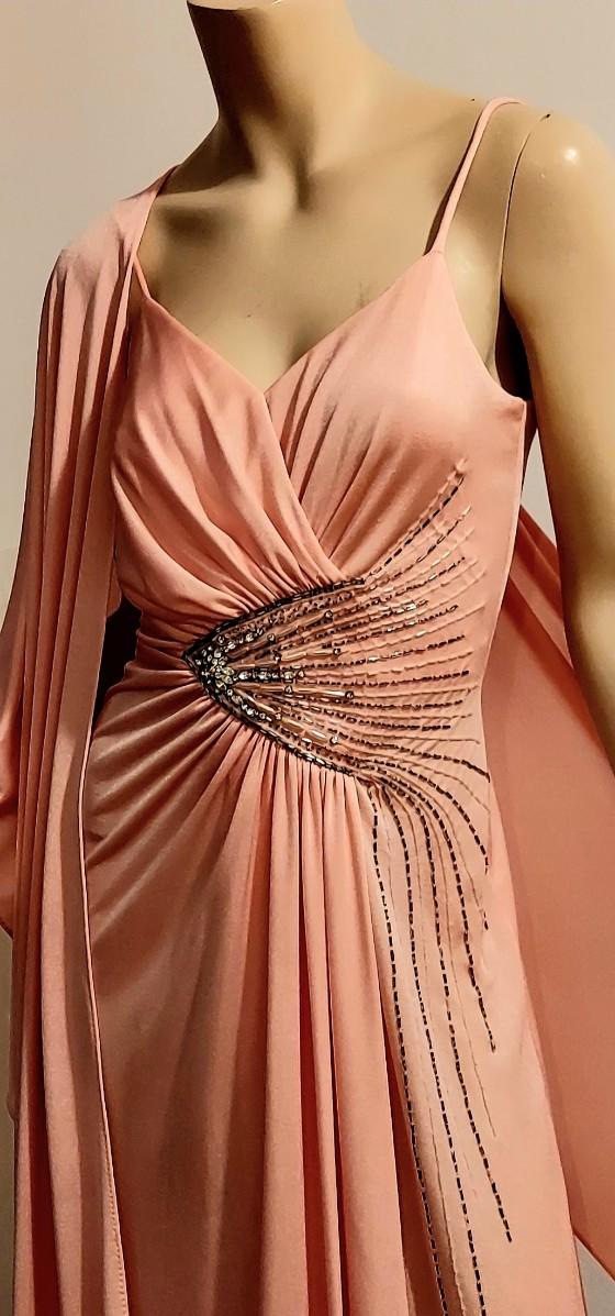 This one is Stunning by Famous Jack Bryan drapped with a Rhinestone side design. With really long Shawl.