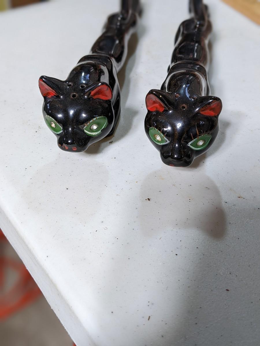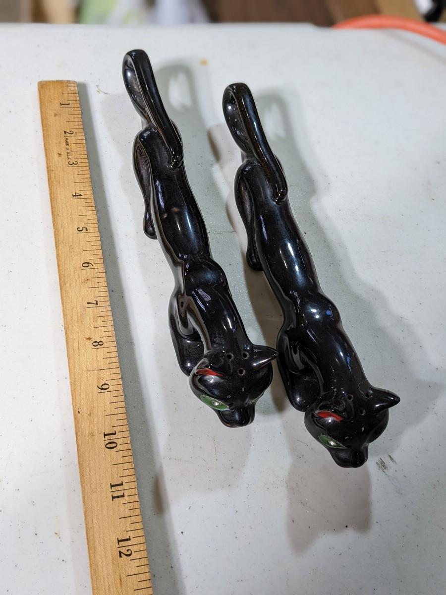 VTG Japan Pottery Stretch Black Cat Salt & pepper Shakers