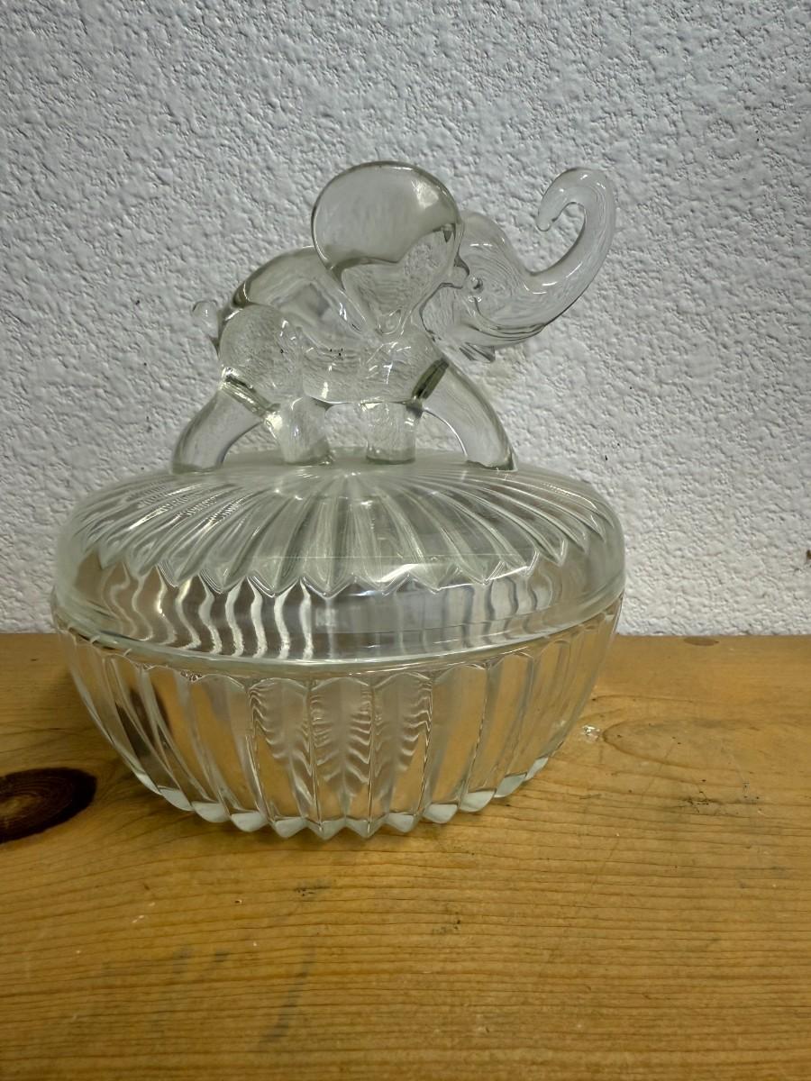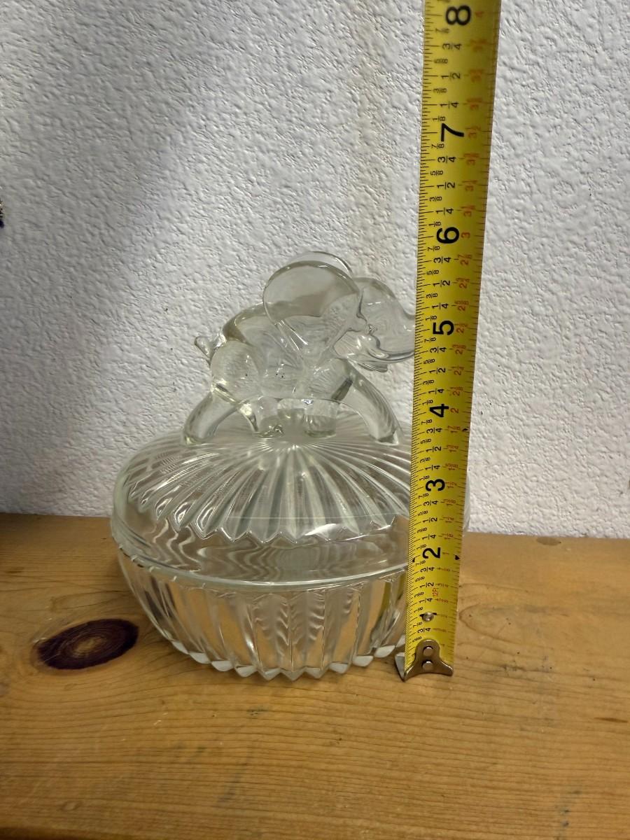 Vtg Jeannette Clear Elephant Glass Powder Jar/Candy Dish Lidded Trinket Box