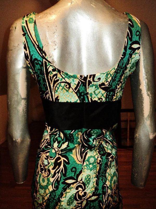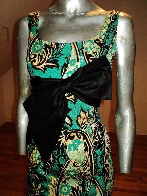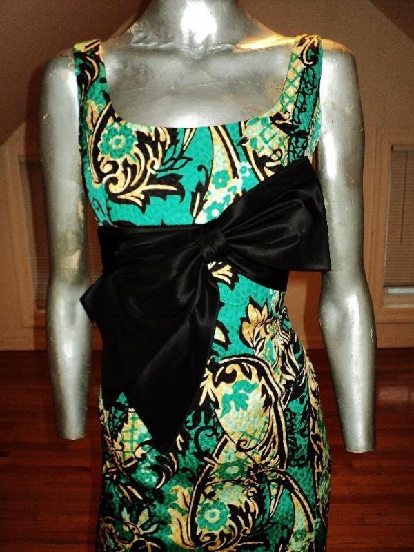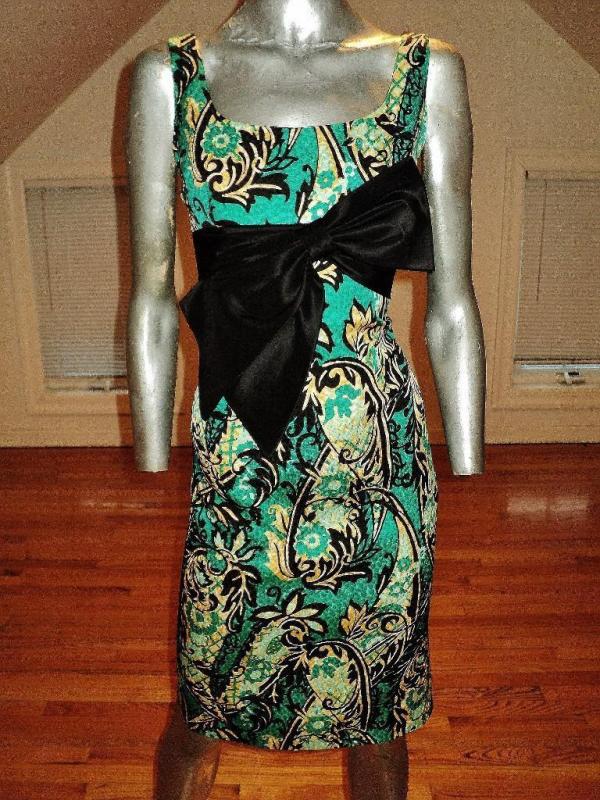 Hardly worn kay Unger Runway dress. Paisley painted print in a silk content , a silk kitten bow accentuating the waistline in an elongated fashion.