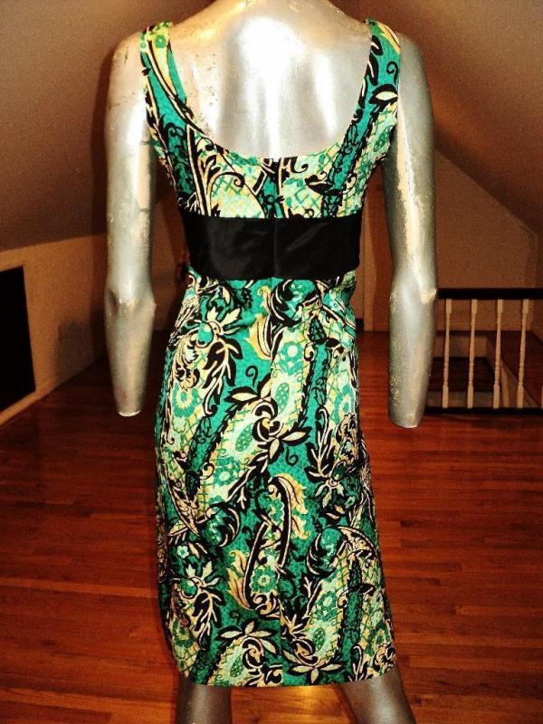 Hardly worn kay Unger Runway dress. Paisley painted print in a silk content , a silk kitten bow accentuating the waistline in an elongated fashion.