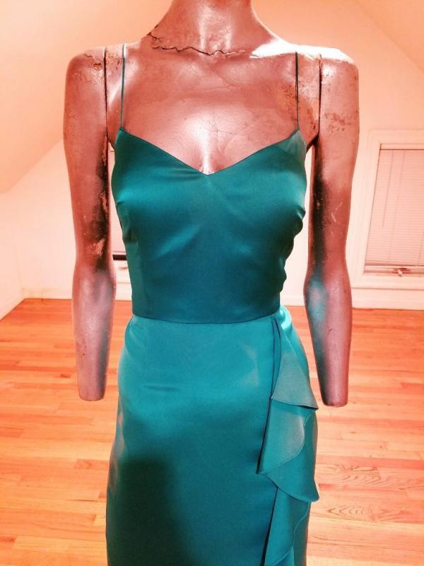 It is somewhat tie dyed with a sweetheart body look and spaghetti straps.