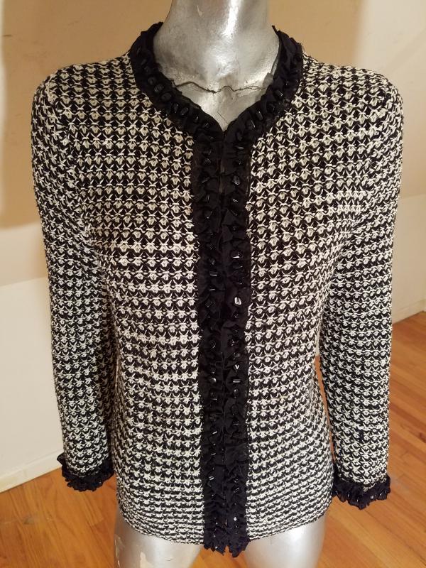 This one is truly a beauty long knotted black and white tunic sweater Embellished with onyx beads