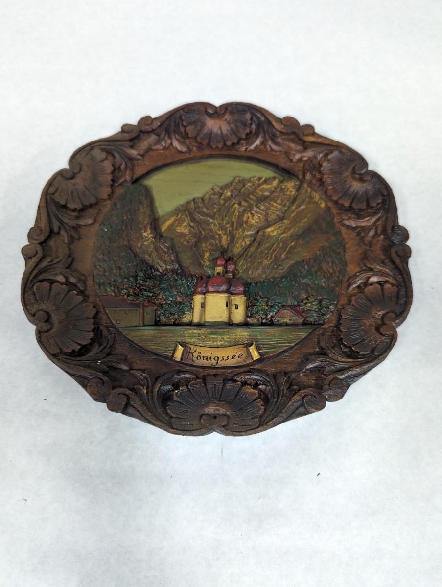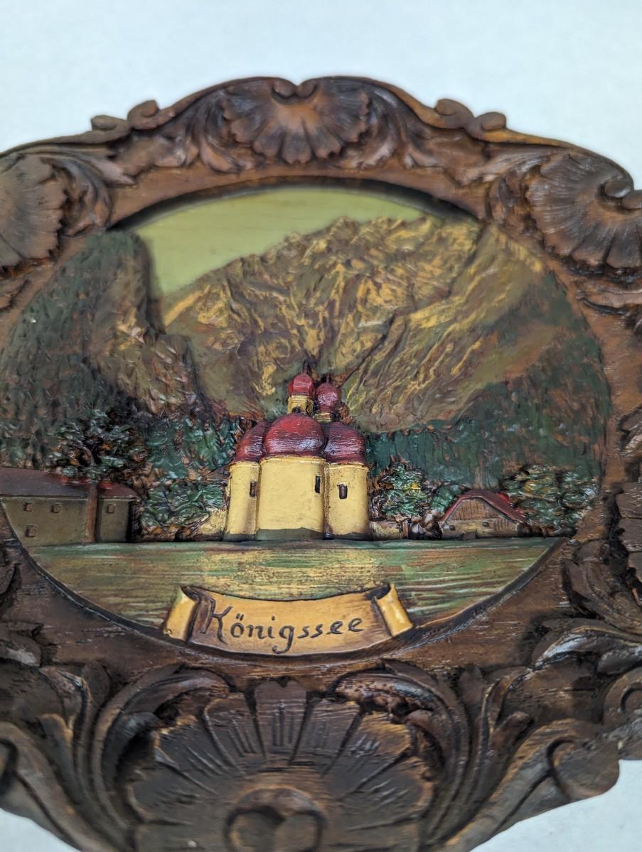 Vtg Konigssee Germany 3-D Souvenir Plate Handpainted Pressed Wood