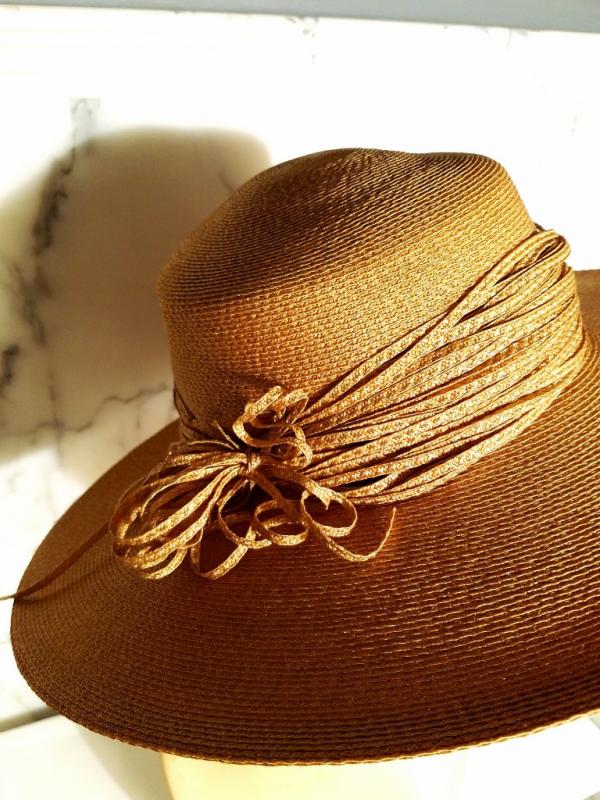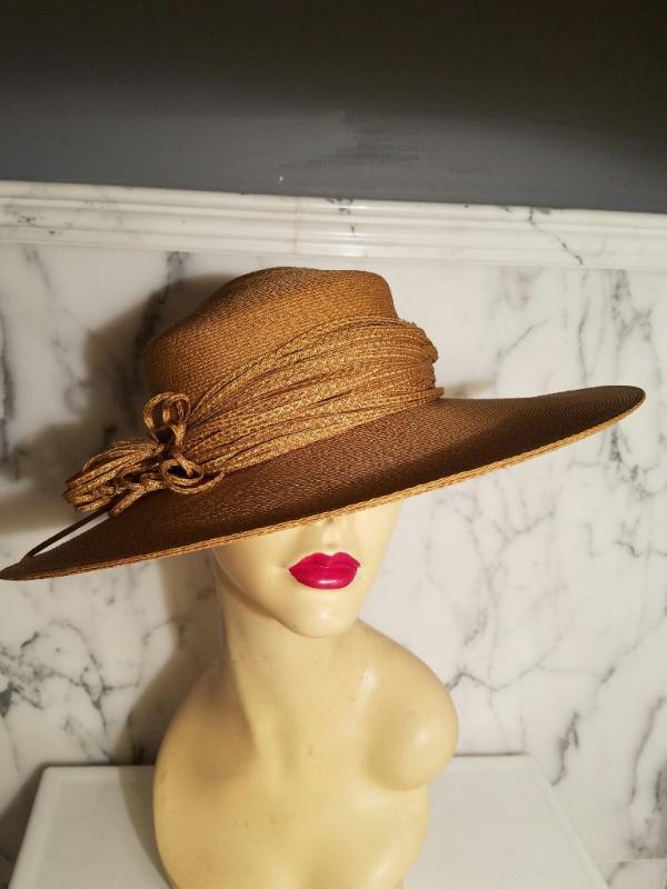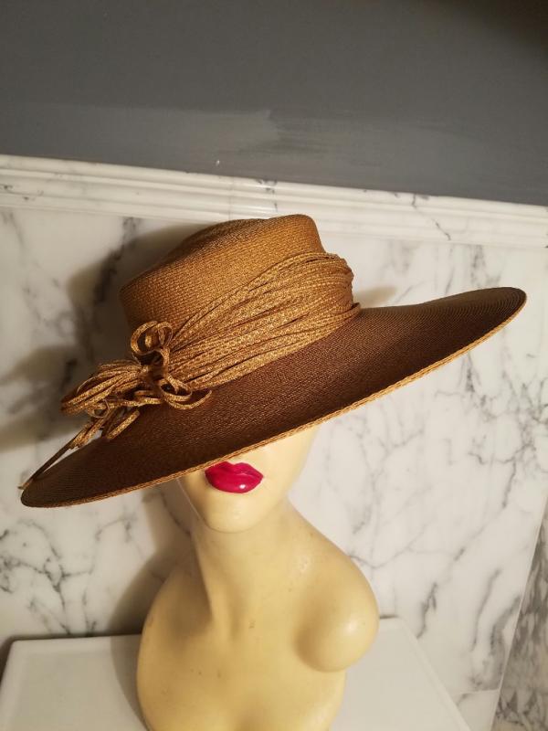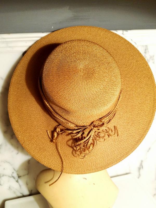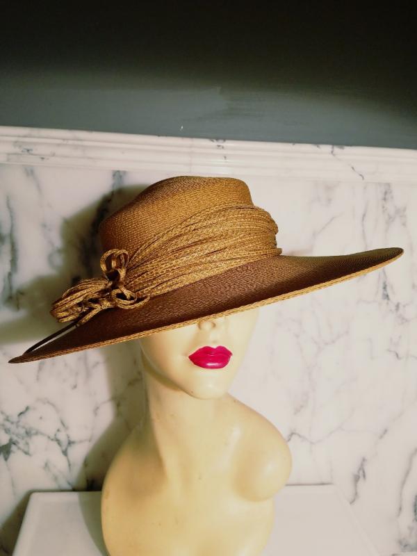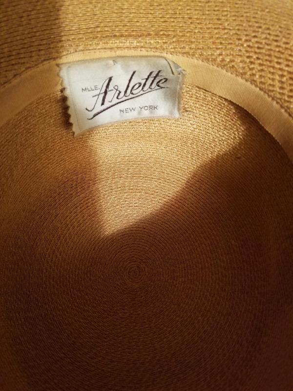 Amazing spectator wide brim real straw hat by famous Mlle Arlette new York. circa late 1940's early 1950's . Amazing details and look especially at the ribboned straw bow. In amazing condition