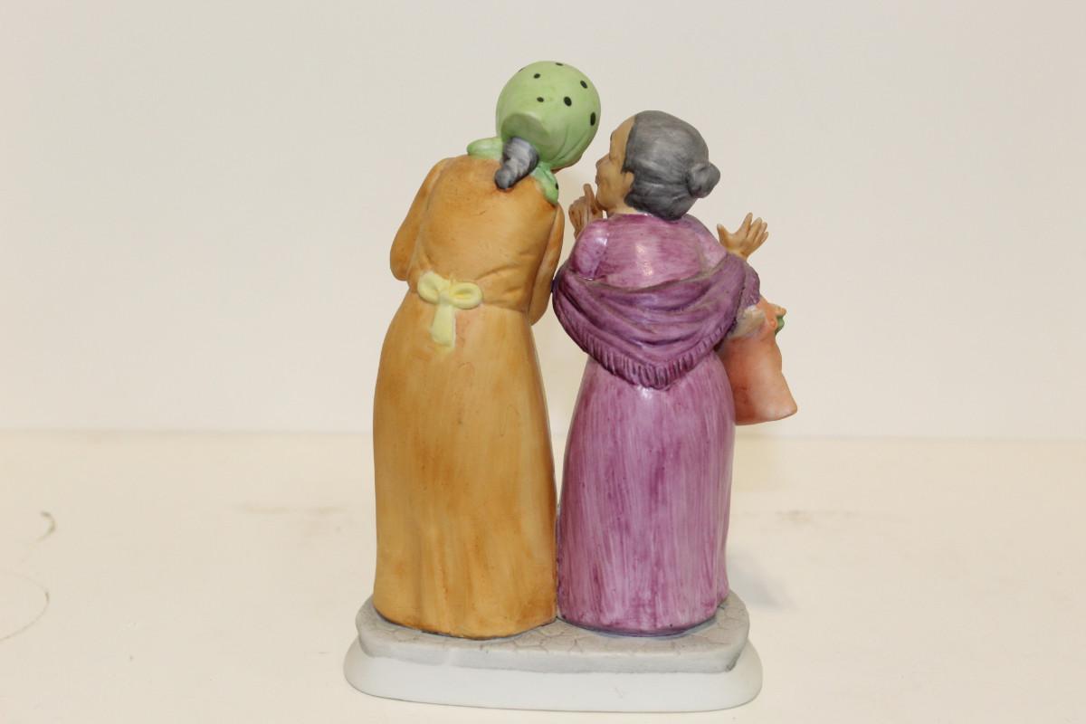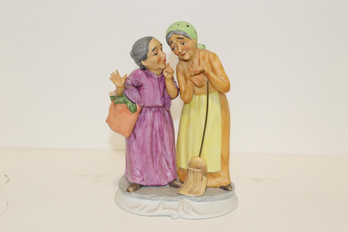 Vtg Lefton 2 Old Woman Gossiping Bisque Figurine 2568 Hand Painted 7.5" Tall