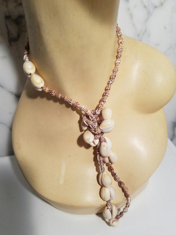 Beautifully hand made with south Pacific Sea Shells. This one can be worn in different ways that I show in the pictures or as a long strand. Very unique looking and quite rare and beautiful.. All one long piece no closure.
