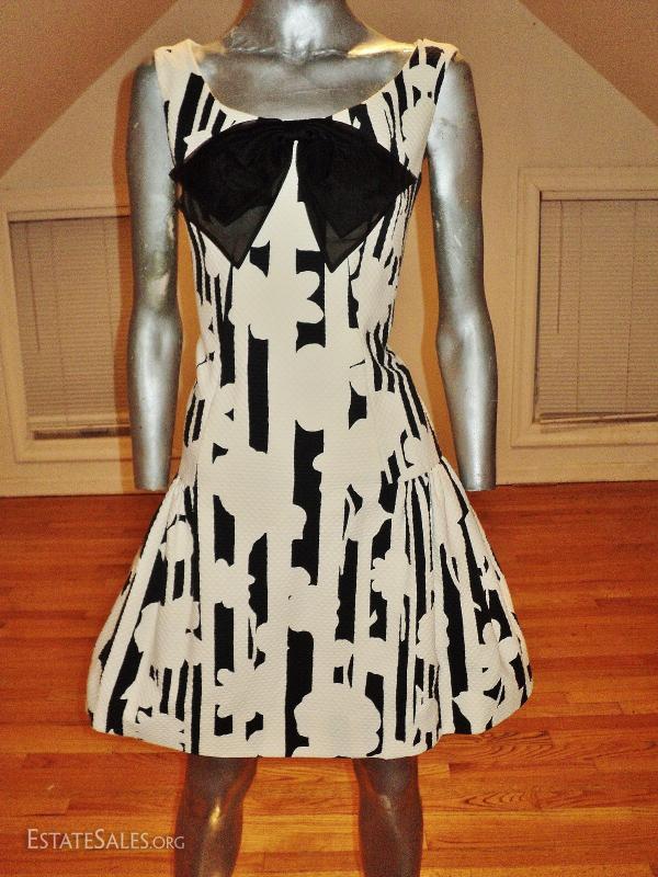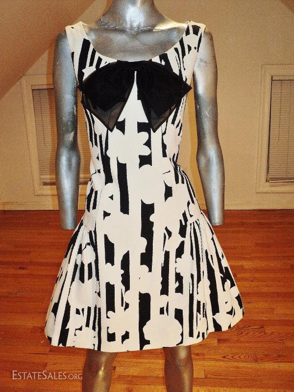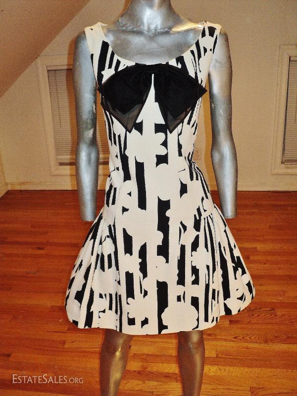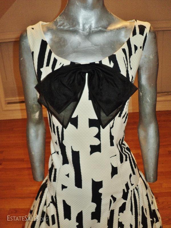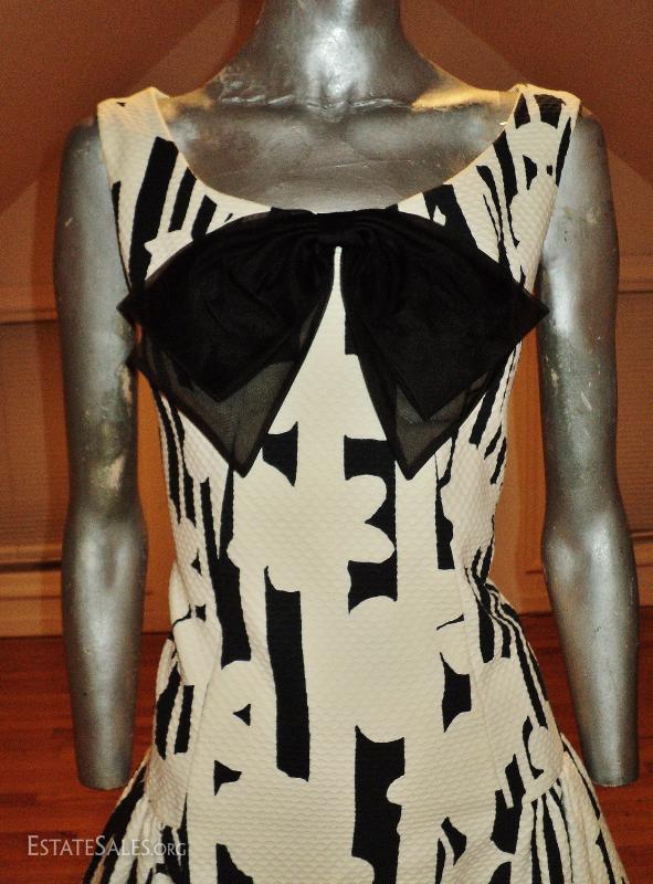 Made for Lord & Taylor in the 1970's. Pique fabric and organza bow. The skirt design are shirred at the sides. Fully lined with cloth.