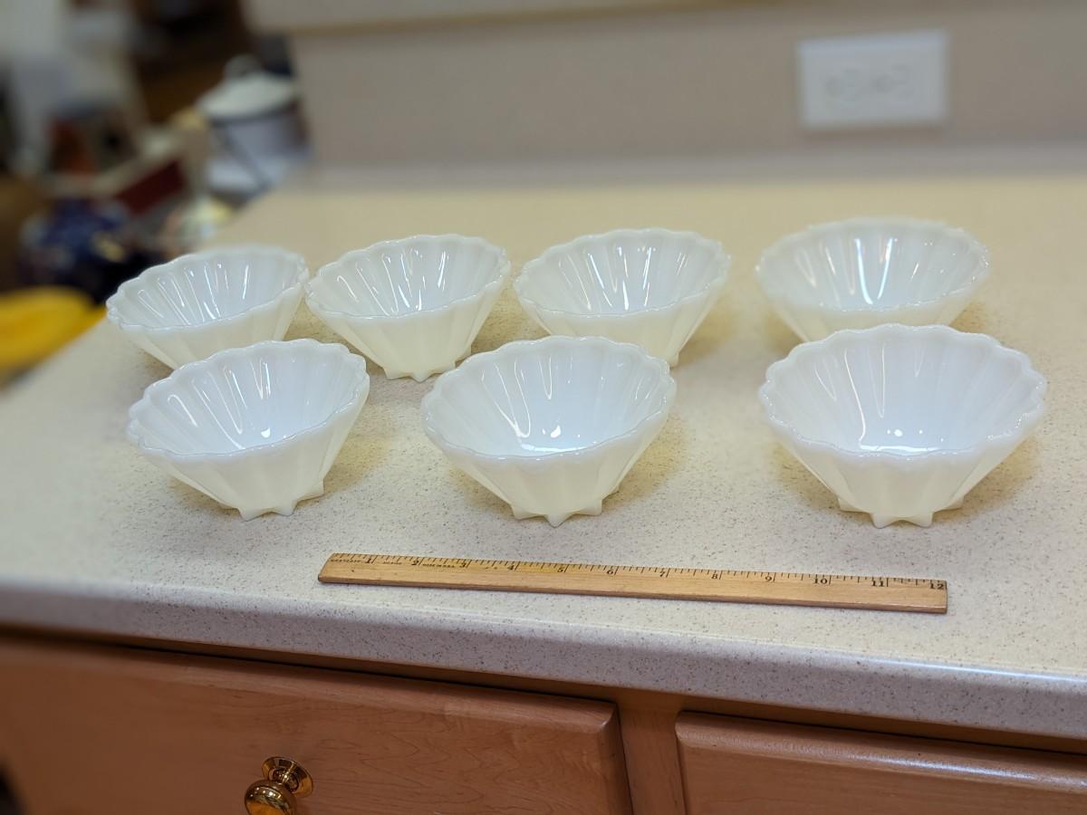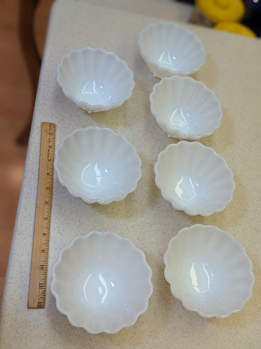 VTG Lot of 7 White Milk Glass Star Bottom Scalloped Shell Dessert