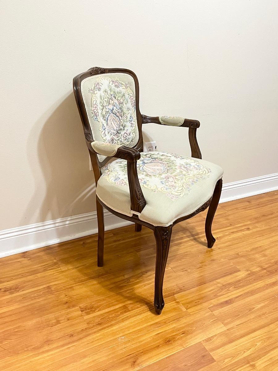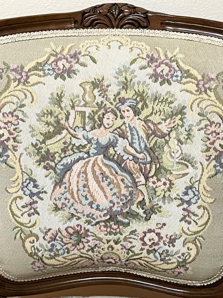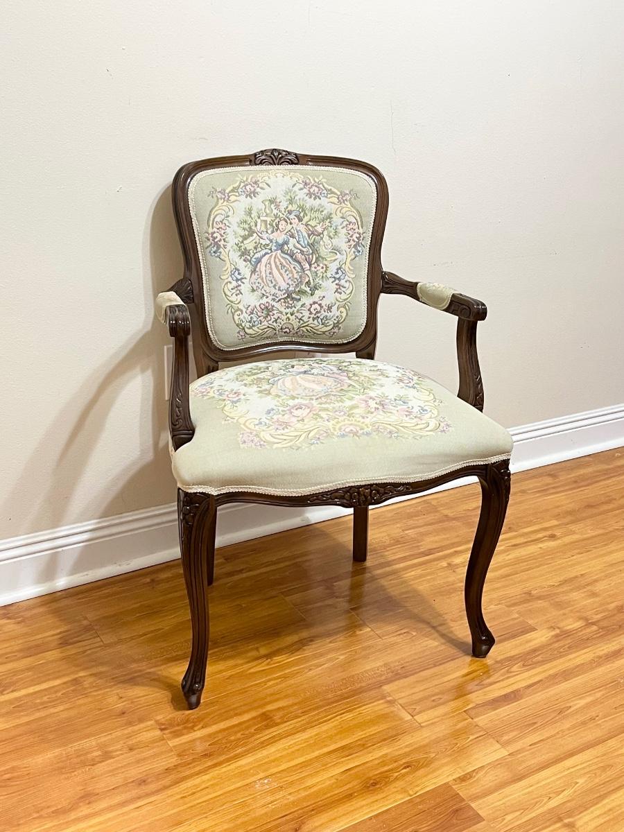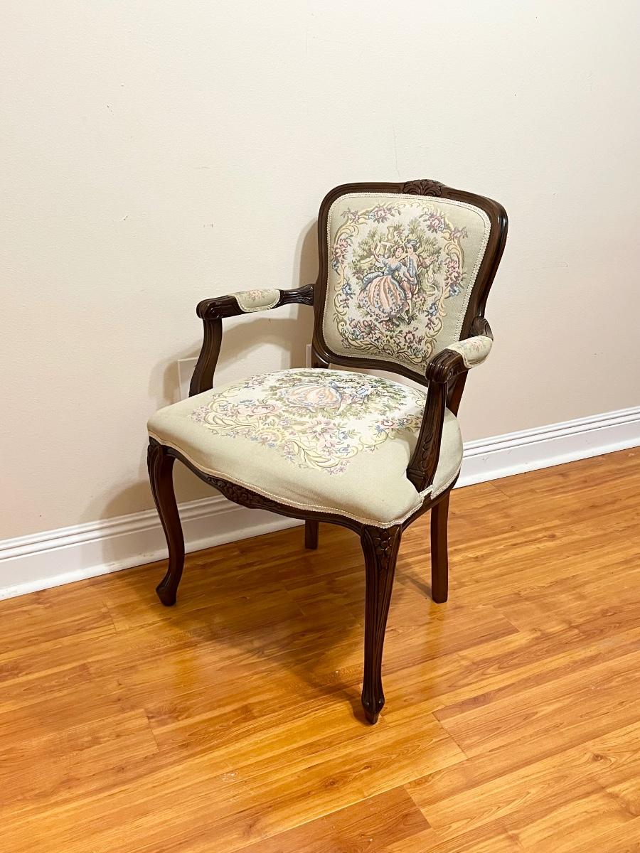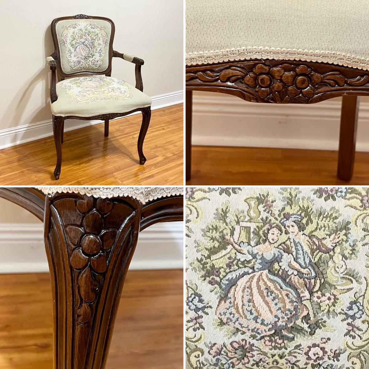 Vtg. Louis XV Courting Couple Tapestry Fauteuil Armchair