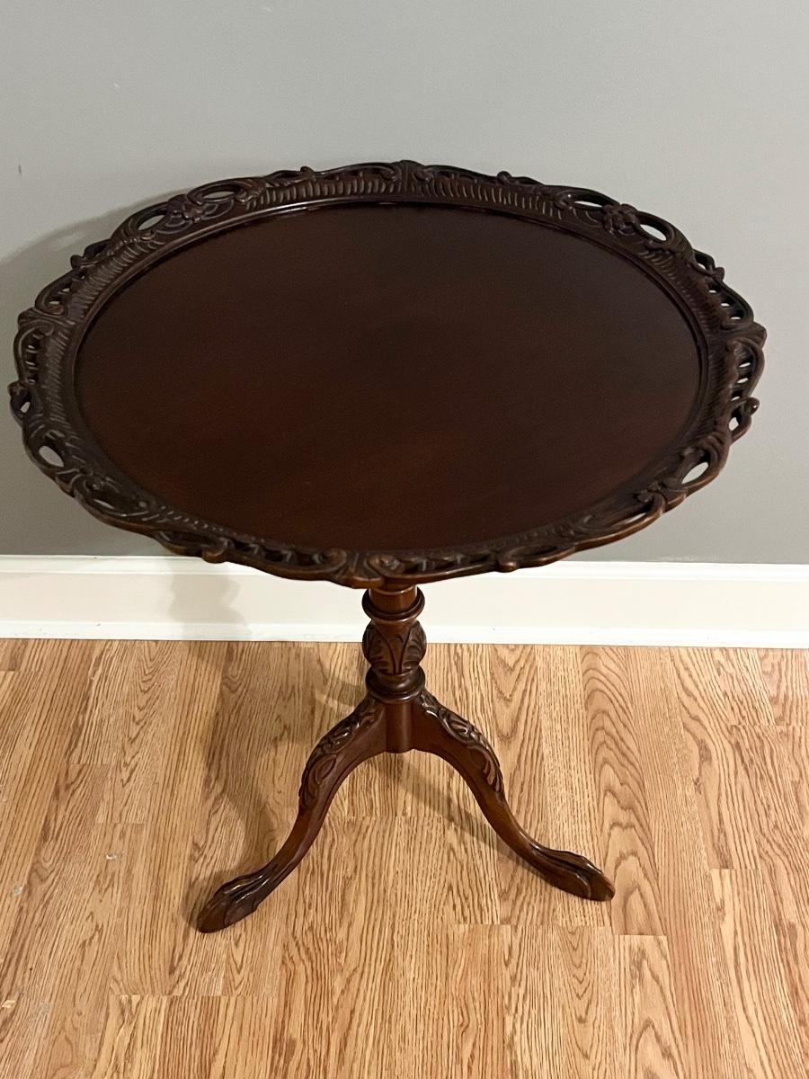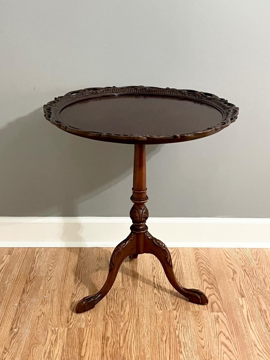 Vtg. Mahogany Pie Crust Accent Table With Clawfoot