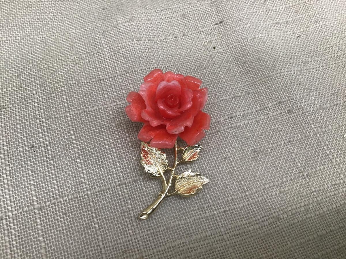 Vtg Marked Gold Tone Metal Celluloid Petal Flower Brooch Costume Jewelry