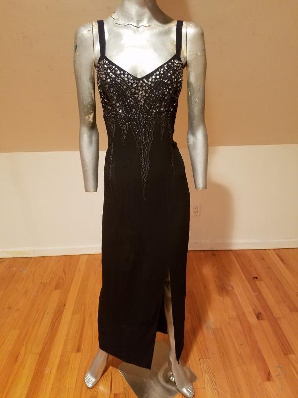 A real beauty in a crepe fabric and beautifuly embellishd high low bodice front. A vintage US size -14 mad in Italy