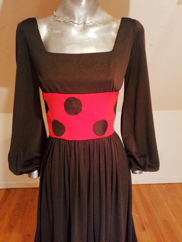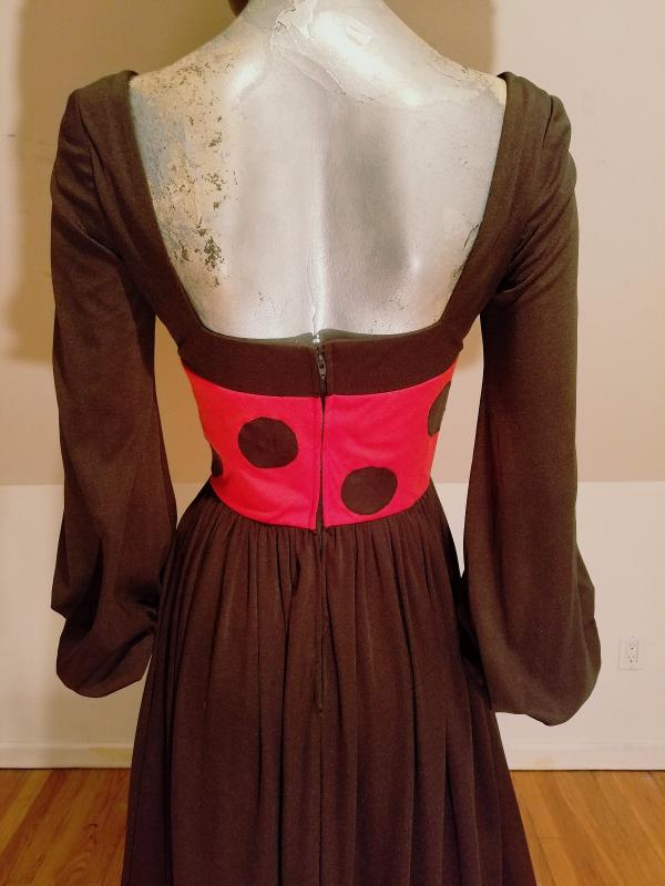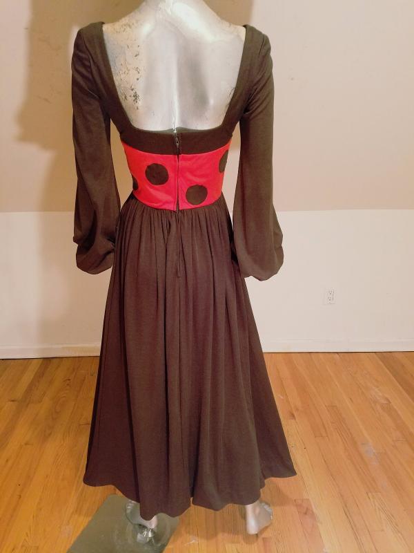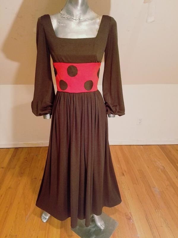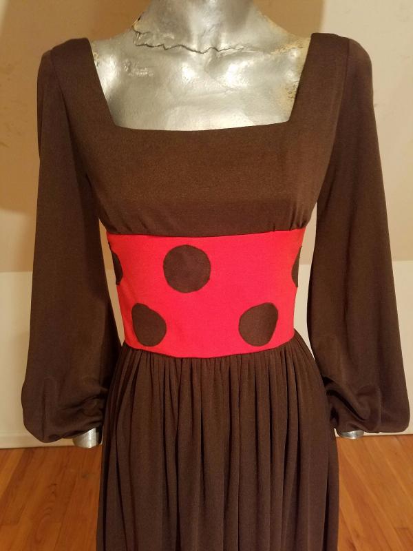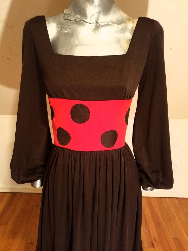 Vtg Maxi 1970's Polka dot dress Cocoa/Orange fluid