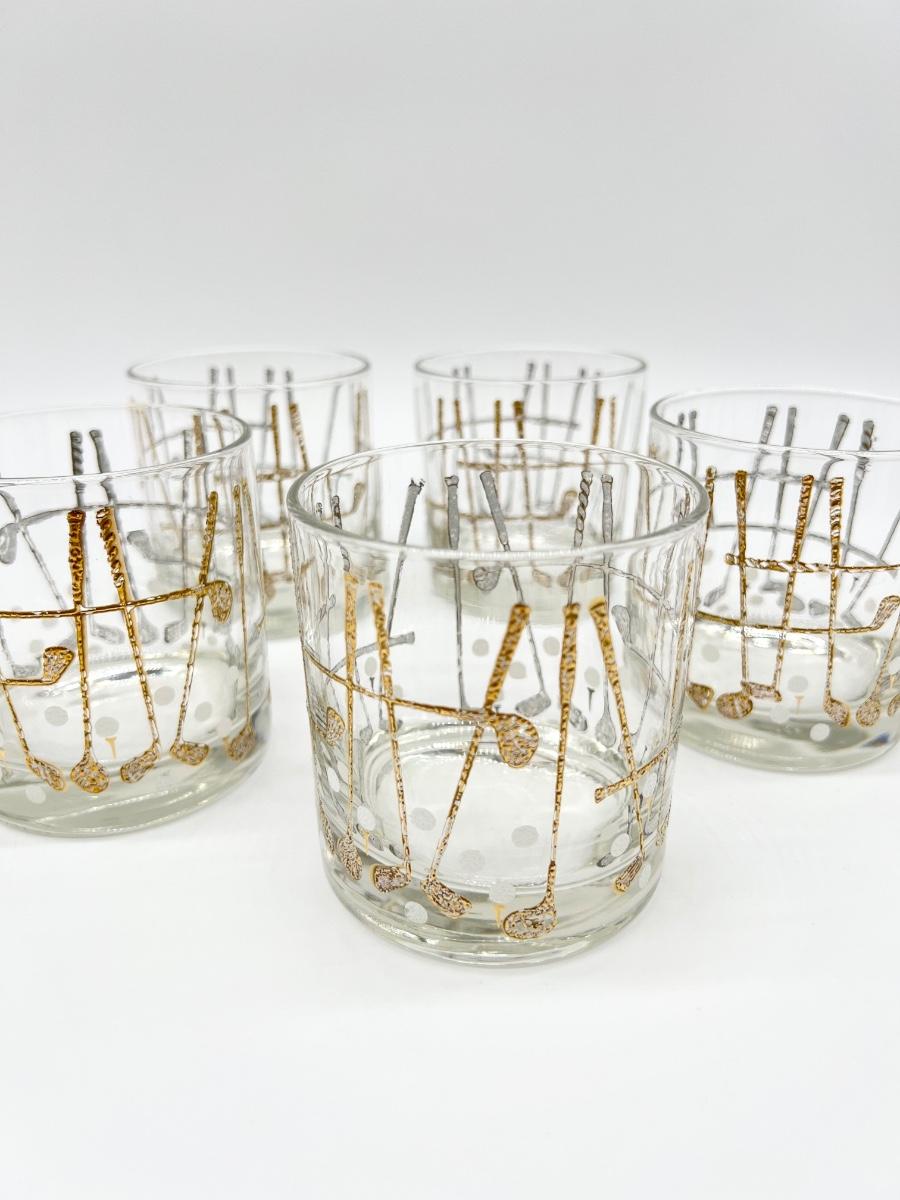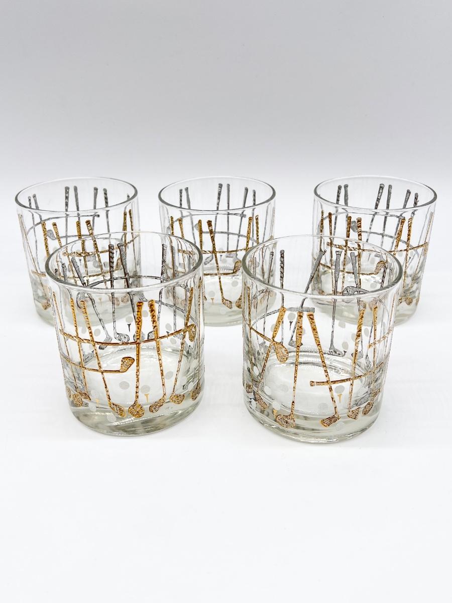 Vtg MCM Georges Briard 22 K Whiskey / Highball Golf Club Glasses ~ Five (5)