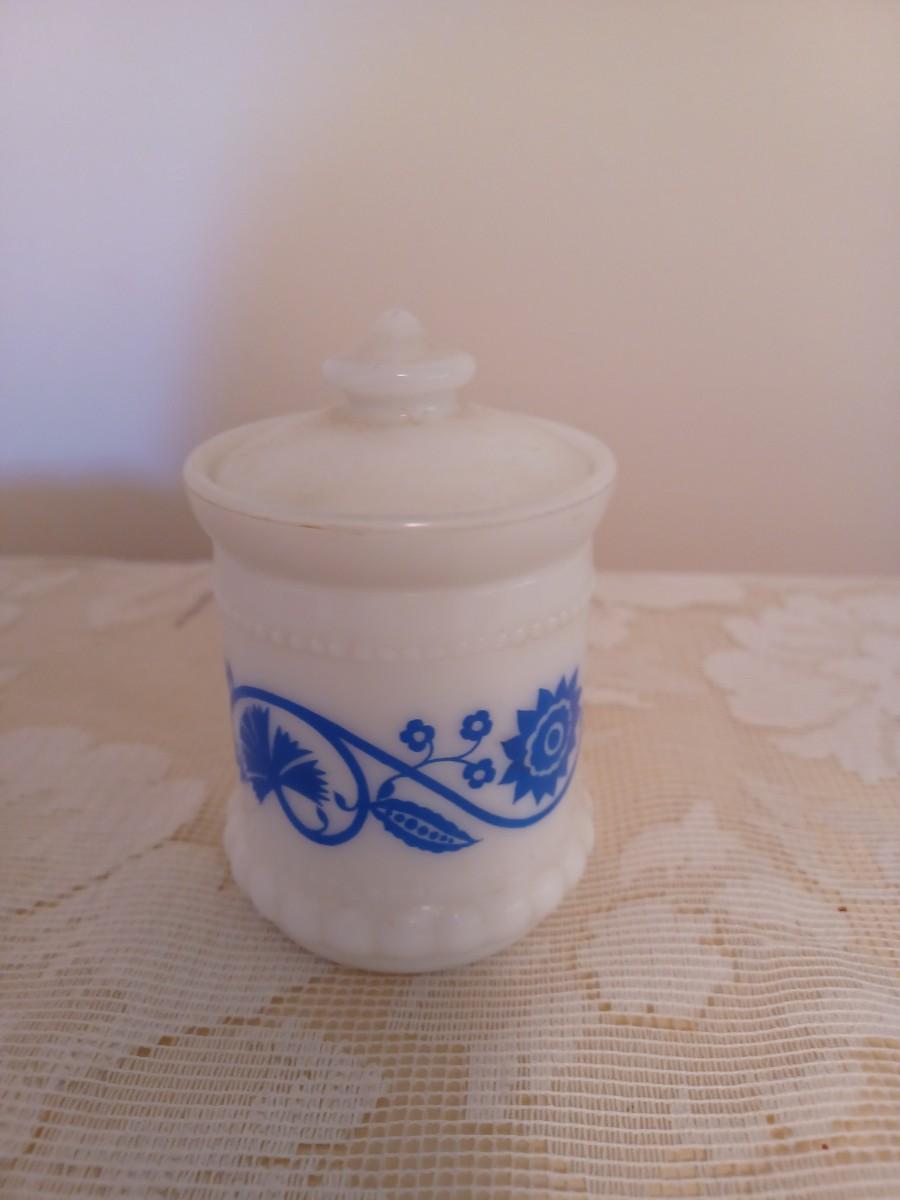 Blue Floral Toothpick Holder Condiment Jam Jar