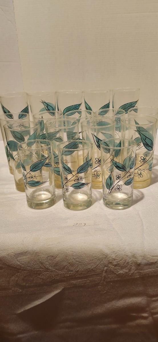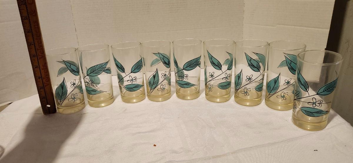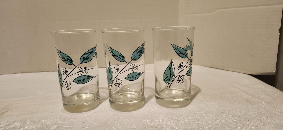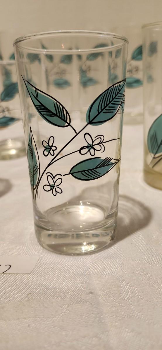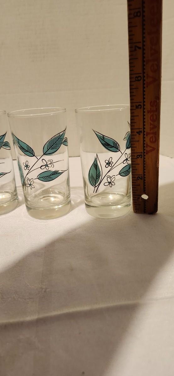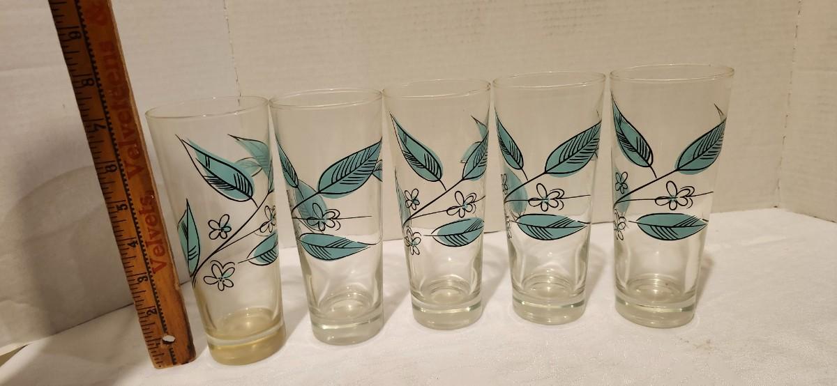 Vtg MCM Salem Biscayne/Royal Windsor Glasses Blue Leaves