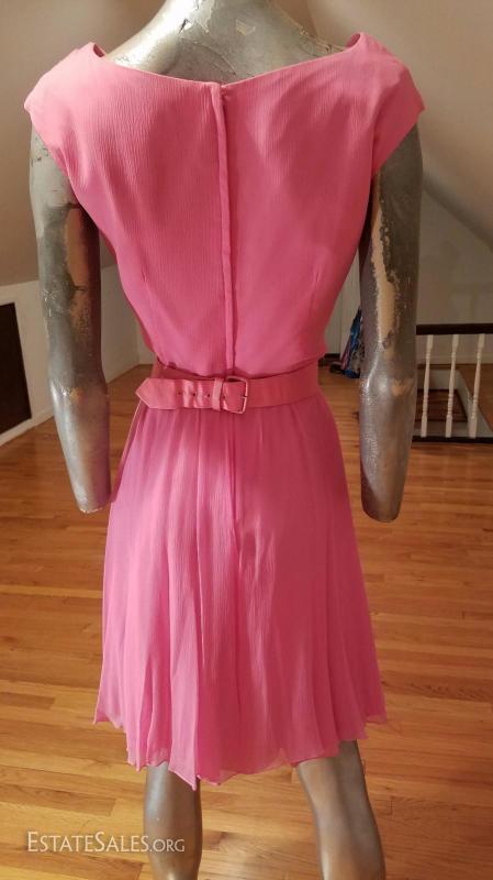 A true beauty from the Estate of MGM Hollywood Star Elaine Ravell which I am proud to present this beauty is in a cerise silk chiffon with its own sash satin belt.ease draped collar in amazing condition. Truly a rare Hollywood MGM Collectible Actor History