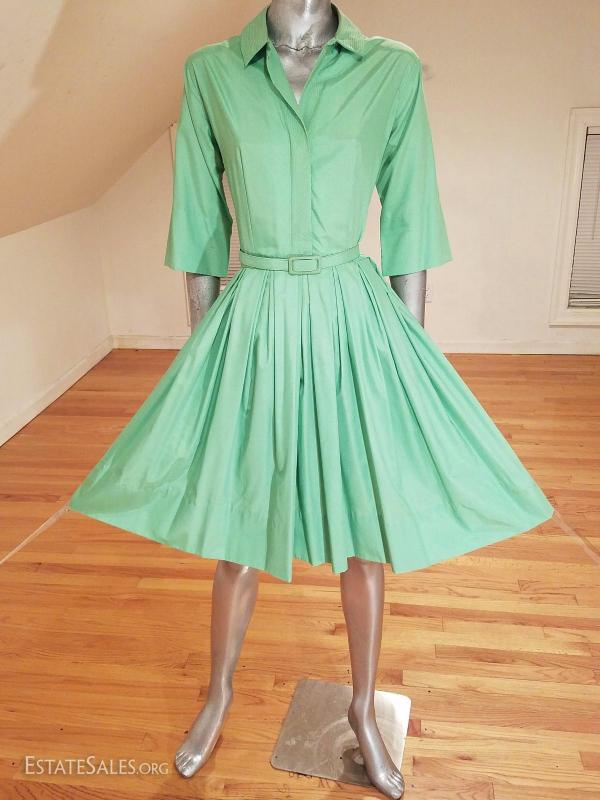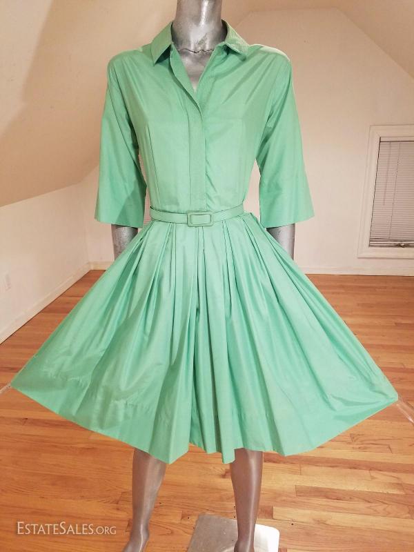 Beautiful full sweep dress brushed cotton with its own belt from MGM Star Elaine ravell Estate part of her collection was used as understudy for Dorothy Lamour This one was made for her by famous Best & Co 5th Avenue. A vintage size -16