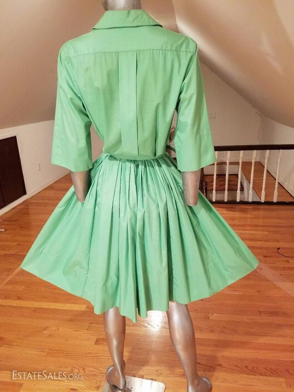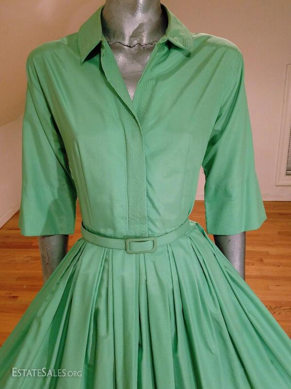Beautiful full sweep dress brushed cotton with its own belt from MGM Star Elaine ravell Estate part of her collection was used as understudy for Dorothy Lamour This one was made for her by famous Best & Co 5th Avenue. A vintage size -16